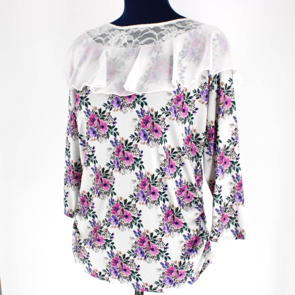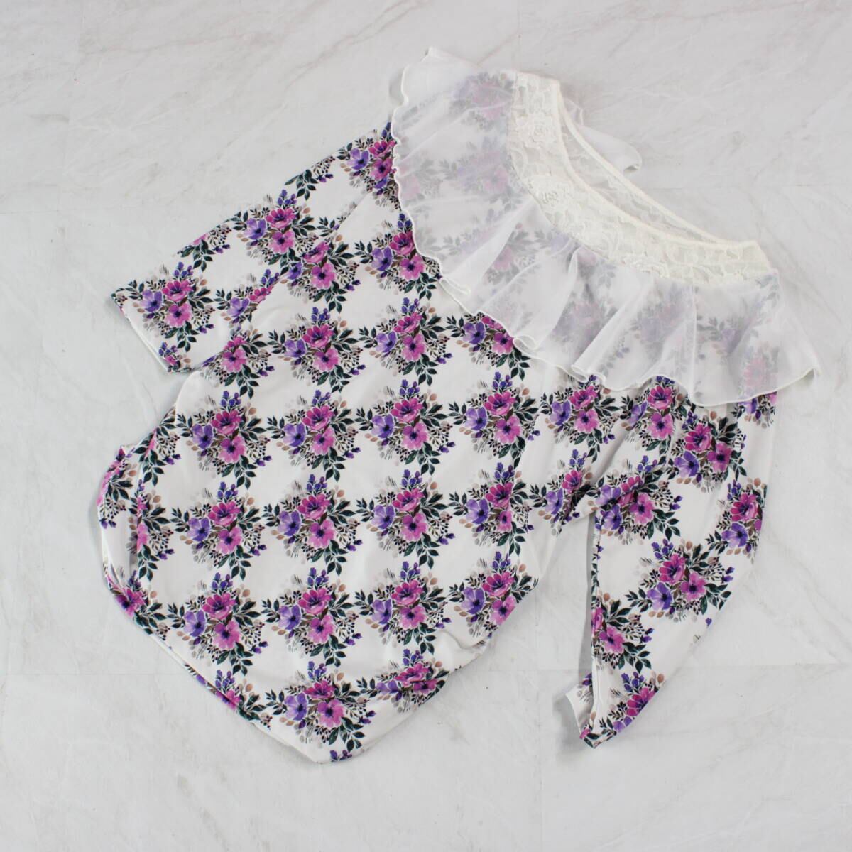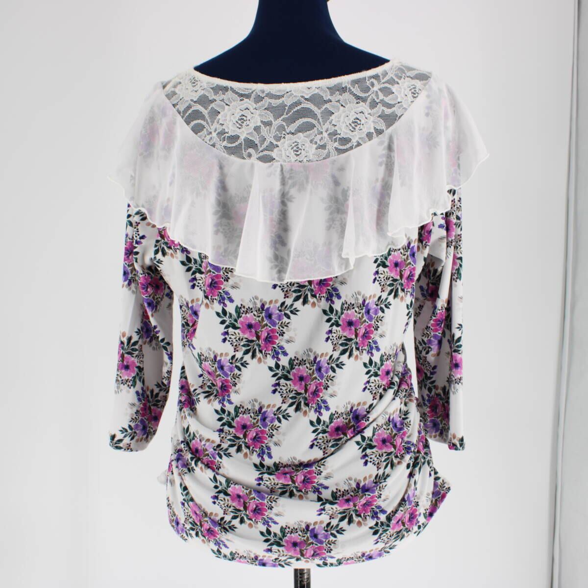 【美品 社交ダンス衣装】トップス レッスンウェア 練習着 紫 白 花柄 レース ホワイト パープル LLサイズ かわいい 可愛い