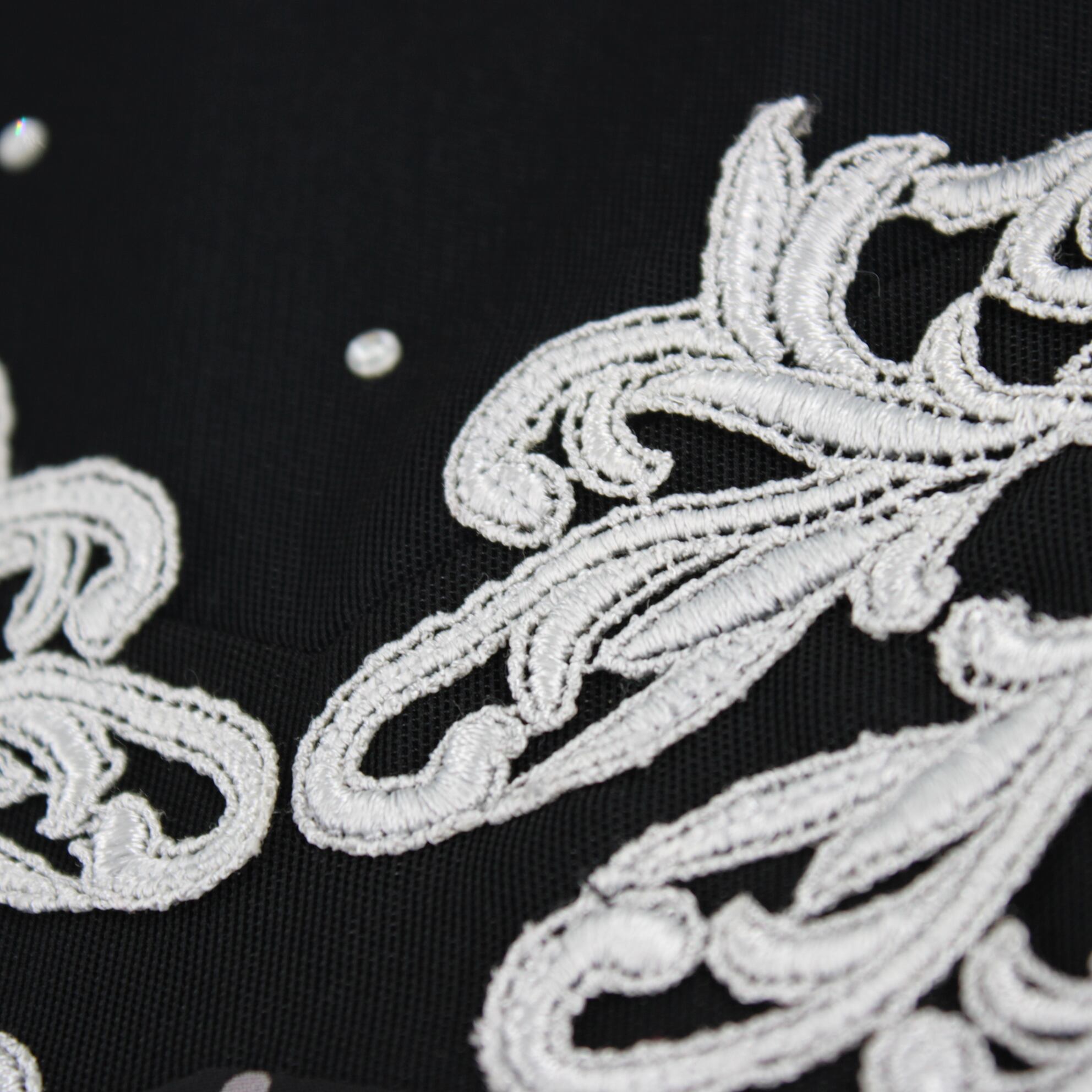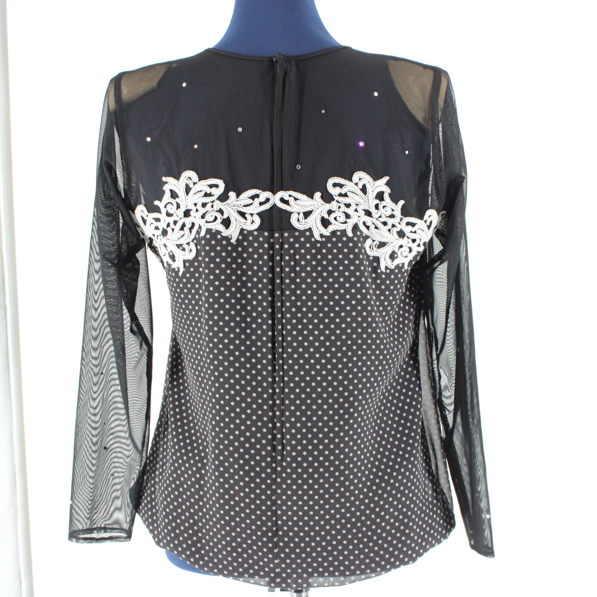 #社交ダンス #トップス #UNA #ユーナ #ドット柄 #ブラック #ホワイト #クラシカル #ラインストーン #上品スタイル #エレガント #レースデザイン #ダンスウェア #ダンスファッション #発表会 #競技ダンス #パーティウェア #ダンス衣装 #古着 #中古 #ENUTSU