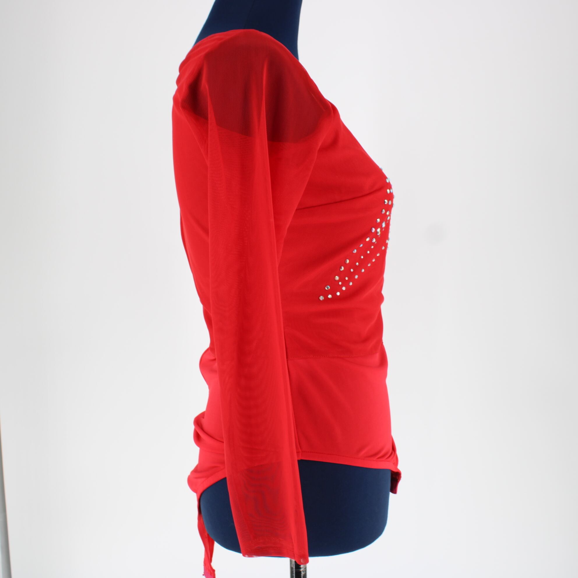 #社交ダンス #トップス #UNA #オールレッド #情熱的 #ラインストーン #ダンスファッション #発表会 #競技ダンス #レッスン着 #パーティウェア #ステージ衣装 #華やか #エレガント #ダンス衣装 #古着 #中古 #ENUTSU