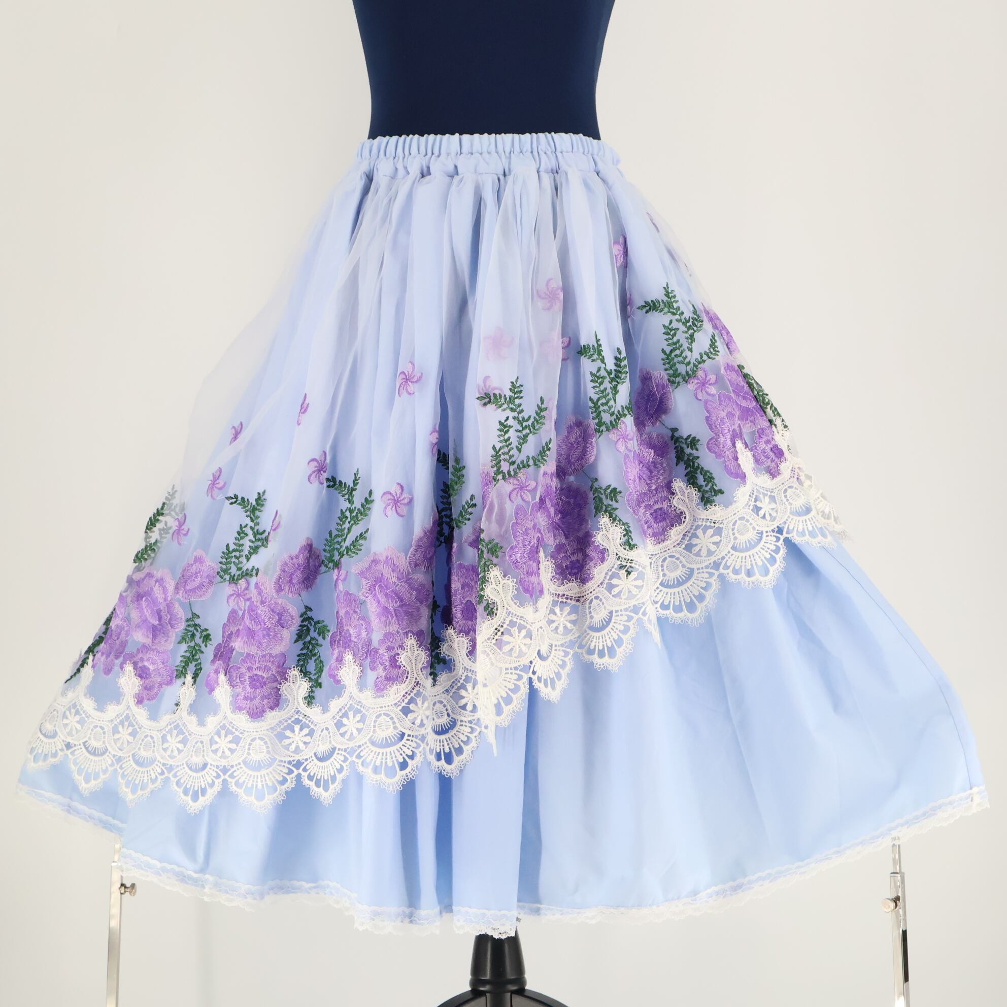 【社交ダンス衣装】パープル AVIVARE アビバーレ スカート 紫 青 水色 ブルー 花柄 刺繍 フリル レース フォークダンス 白