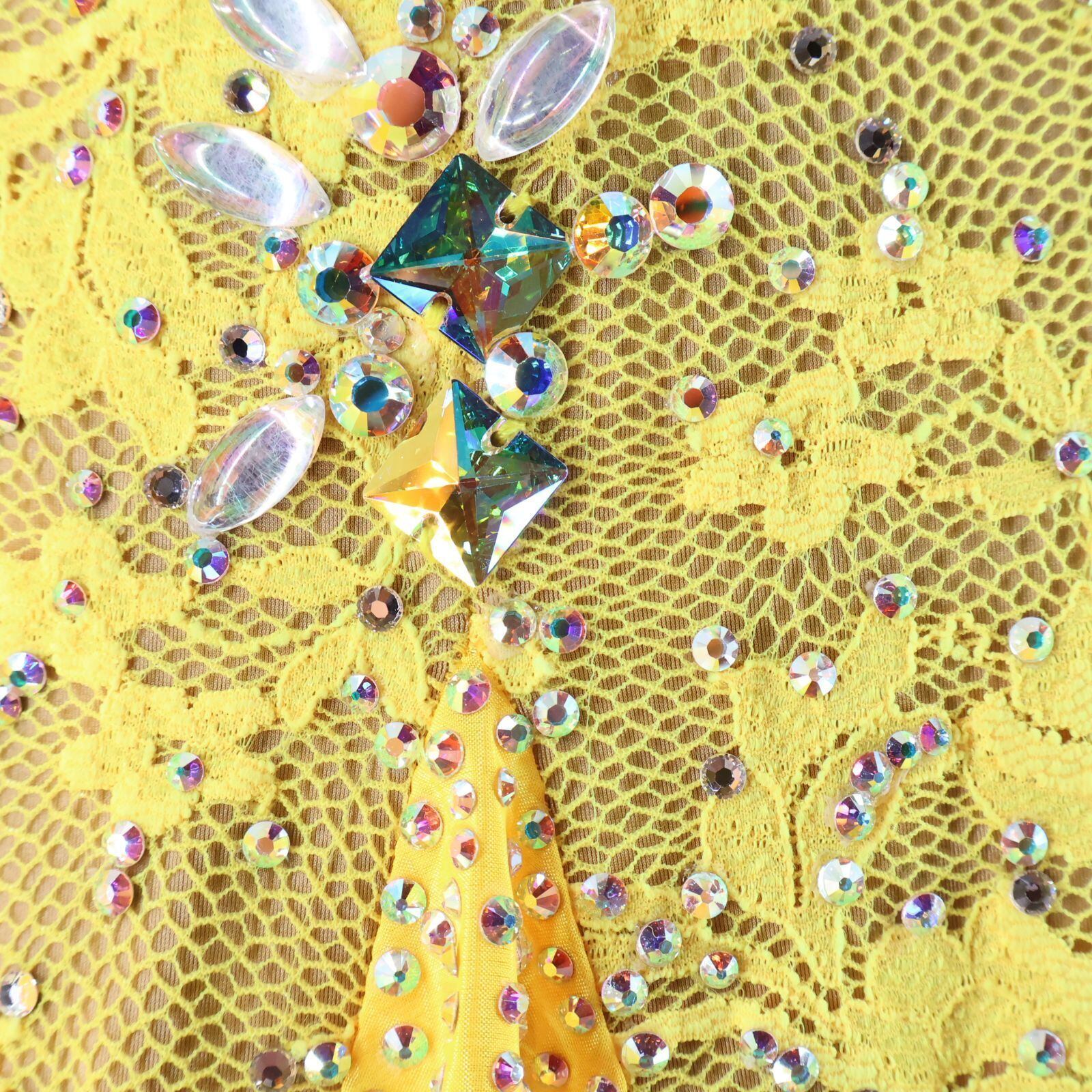 【社交ダンス衣装】イエロー ワンピース ドレス 黄色 フロート ビジュー ラインストーン フリル レース 光沢 デモ 競技用