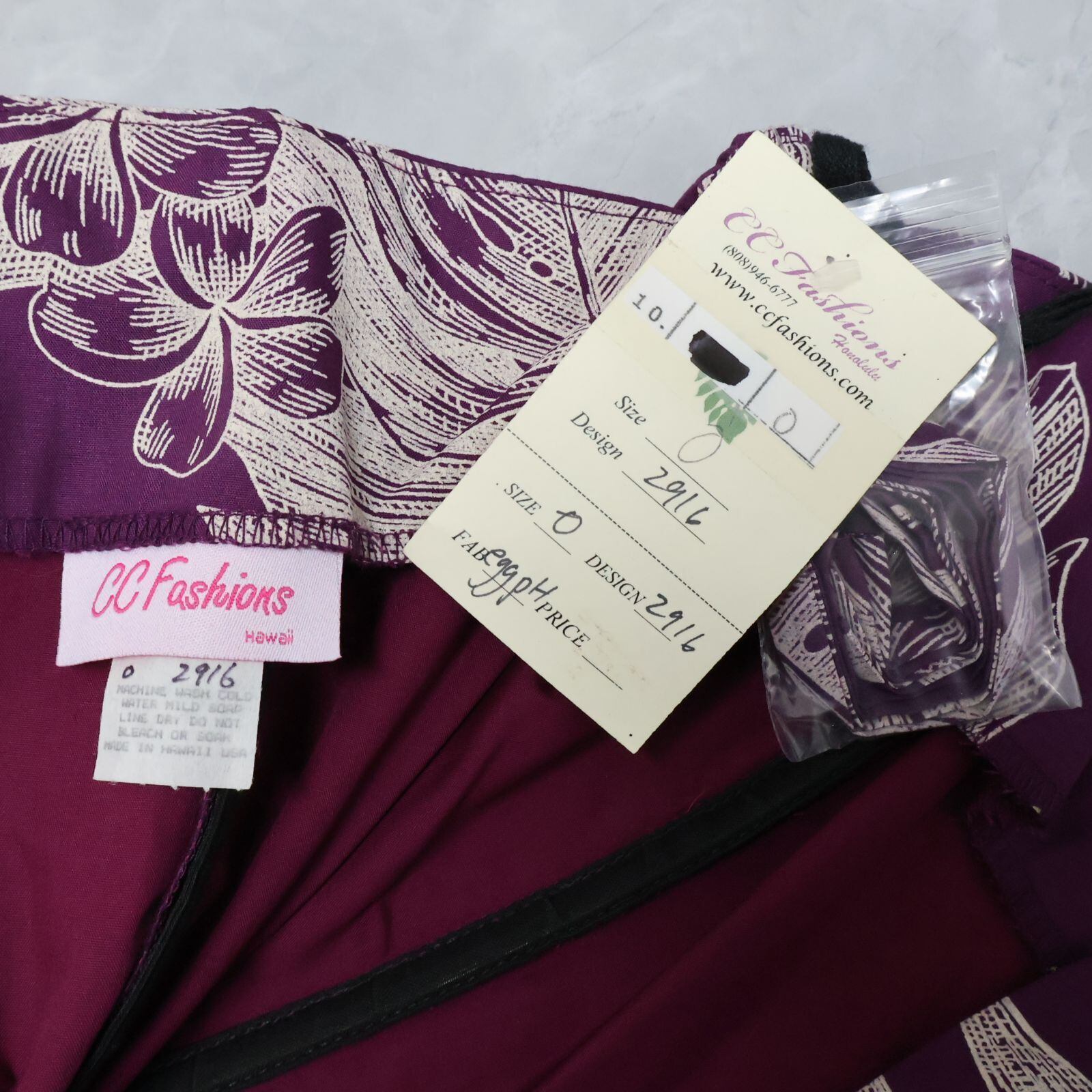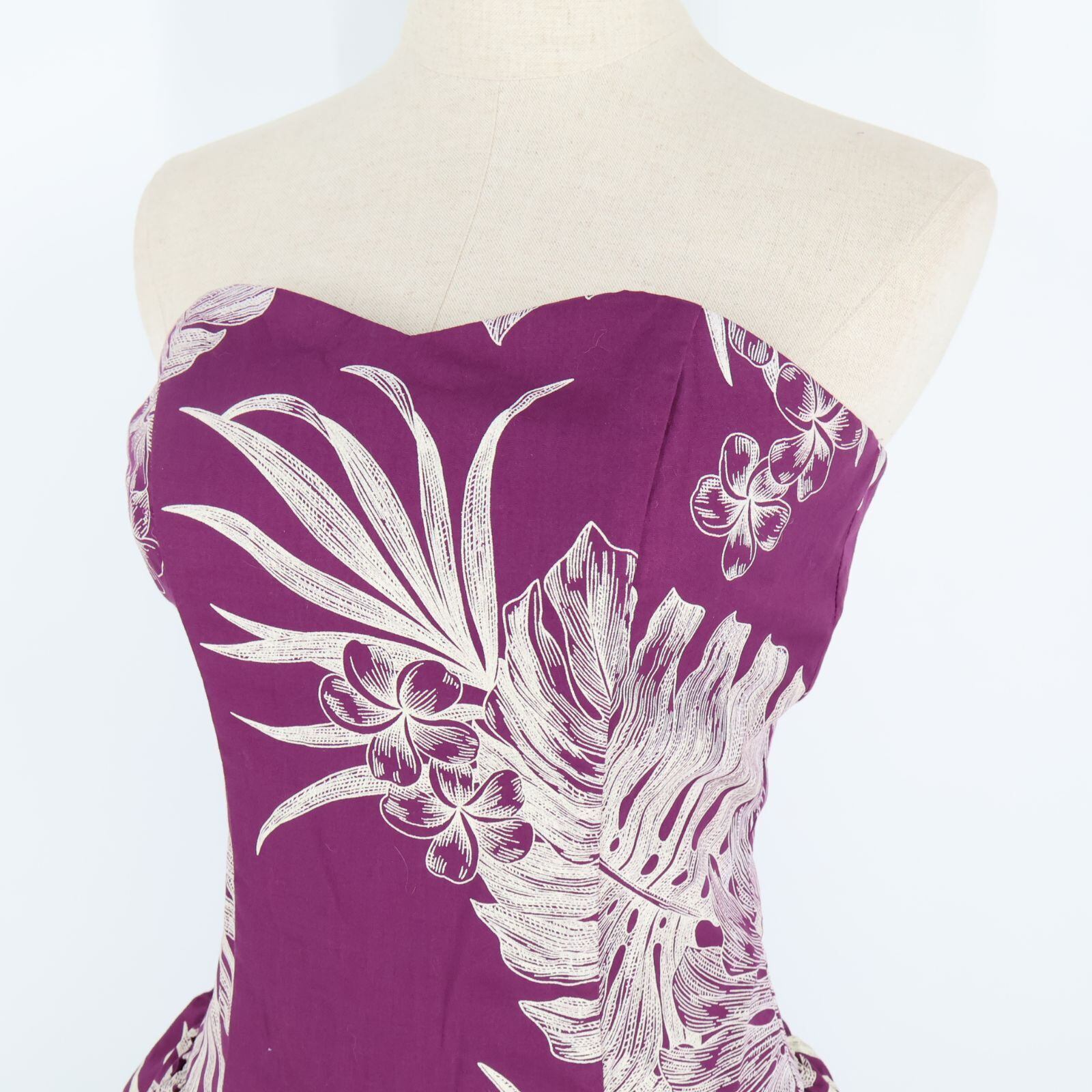 【美品 ハワイ製 フラダンス衣装】パープル CC Fashions ワンピース ドレス 紫 プルメリア柄 白 チューブトップ 花柄 かわいい