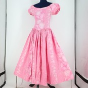 【ハワイ製 フラダンス衣装】ピンク CC Fashions ワンピース ドレス レフア柄 花柄 緑 明るい 華やか ハワイアン 半袖 可愛い
