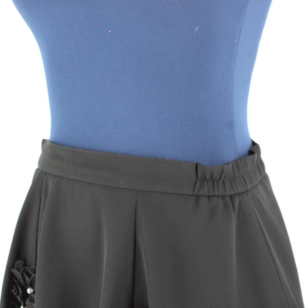 【美品 日本製社交ダンス衣装】スカート レッスンウェア 練習着 Lサイズ 黒 ブラック 花飾り ラインストーン 上品 透け感 清楚
