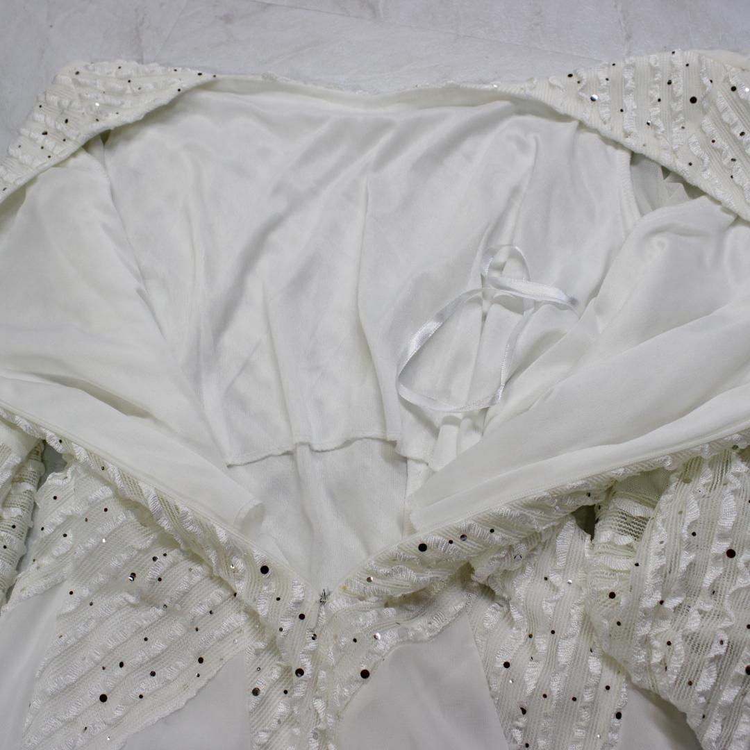 【美品 社交ダンス衣装】ワンピース ドレス prima boutique プリマブティック 白 ホワイト レース リボン シルバ キラキラ