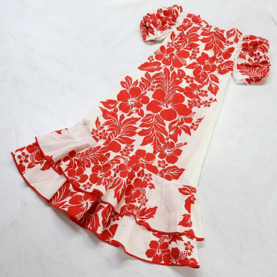 【フラダンス衣装】ホワイト MermaidLine MMJ マーメイドライン ワンピース ドレス ハイビスカス柄 花柄 白 赤 レッド 可愛い