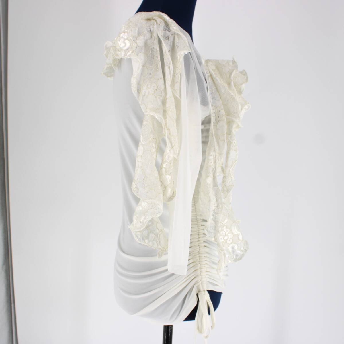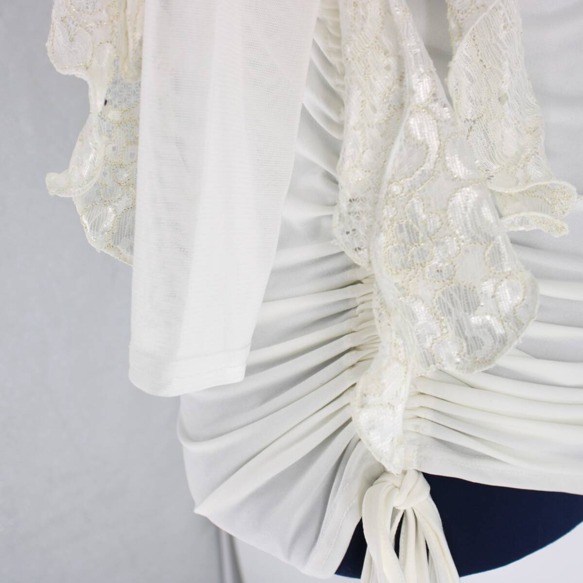 【美品 社交ダンス衣装】トップス レッスンウェア 練習着 白 ホワイト レース アシンメトリー フリル かわいい 可愛い 清楚