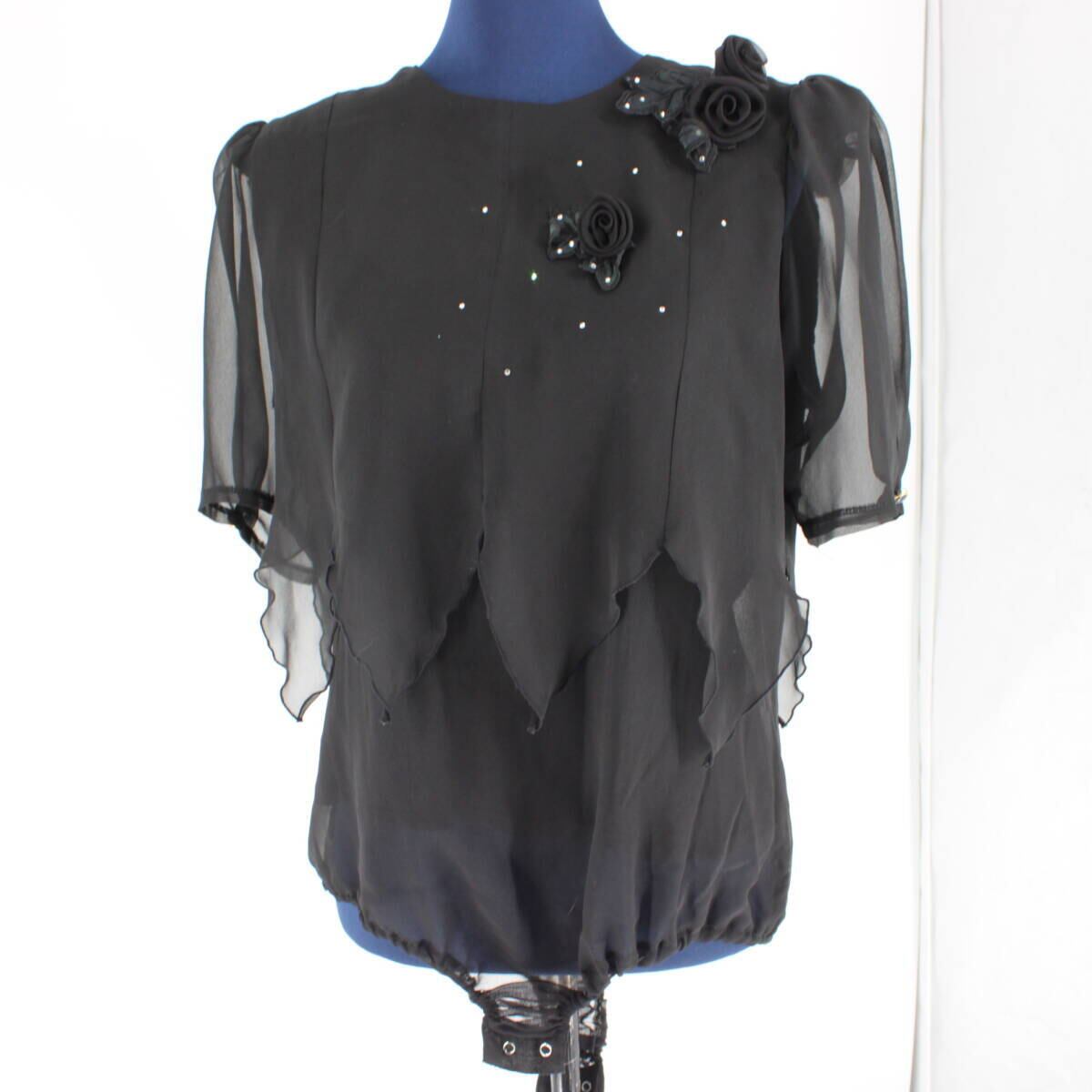 【美品 日本製社交ダンス衣装】トップス レッスンウェア 練習着 クインスター 黒 ブラック Mサイズ 花飾り ラインストーン