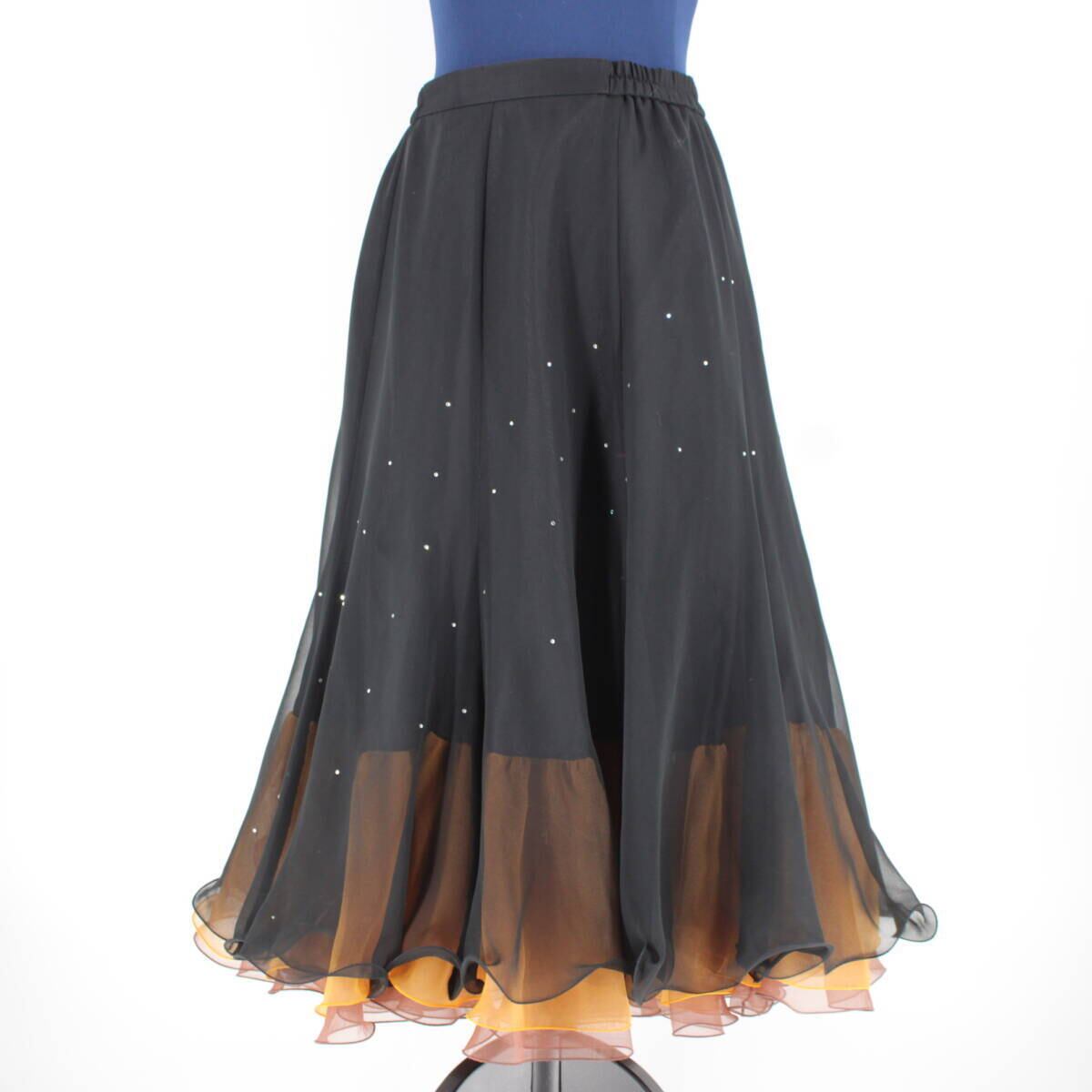 【美品 日本製社交ダンス衣装】スカート レッスンウェア Sanline サンリーヌ 黒 ブラック オレンジ ブラウン ラインストーン