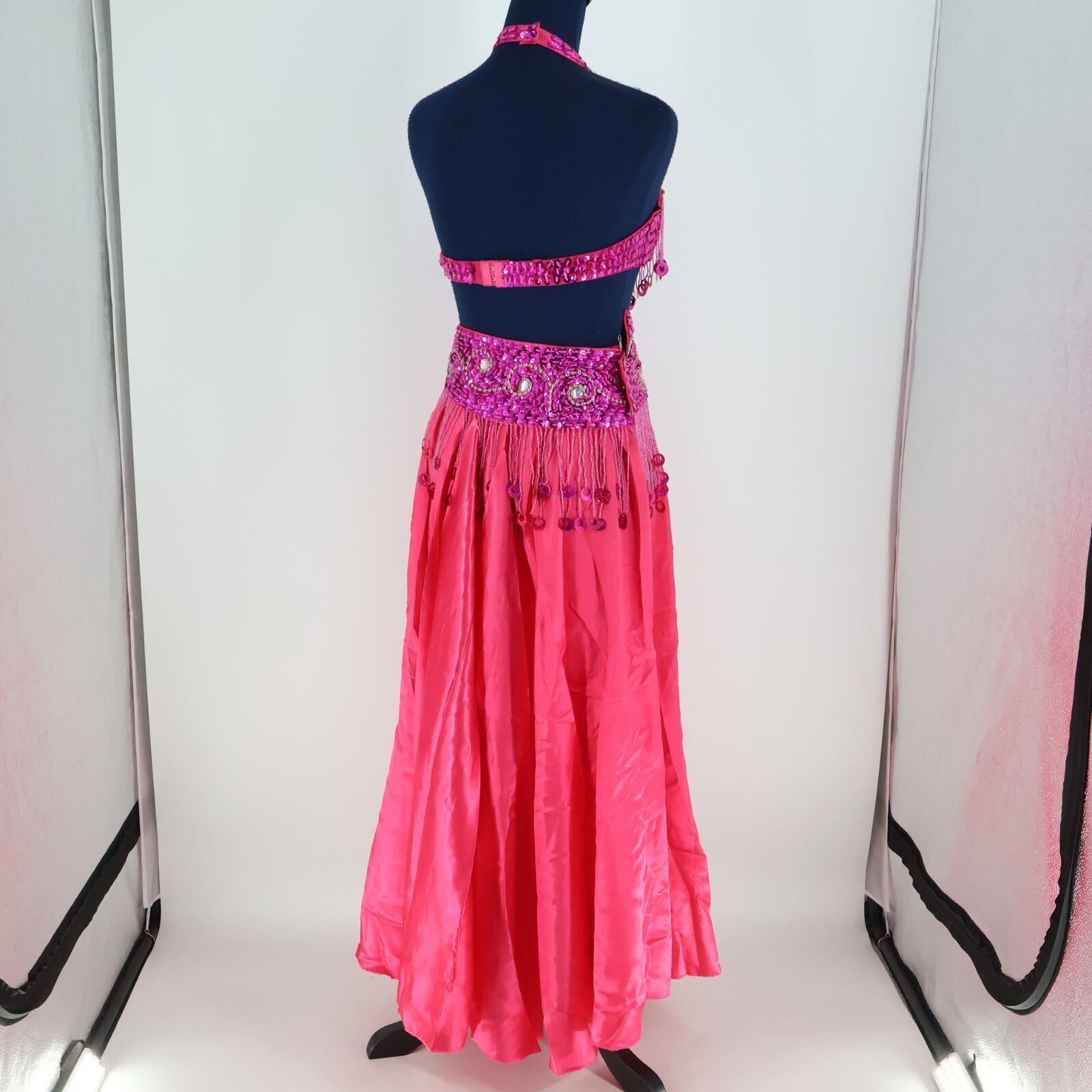 【ベリーダンス用 オリエンタル衣装】ショッキングピンク 装飾 豪華 ラメ 煌びやか 光沢 明るい かわいい ビーズ 女性らしい