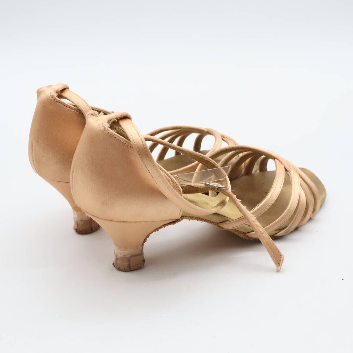 【社交ダンス用衣装】23 1/2CM Sekine セキネ ベージュ ダンス シューズ レディース用 モダン ヒール 光沢 サテン 紐 女性用