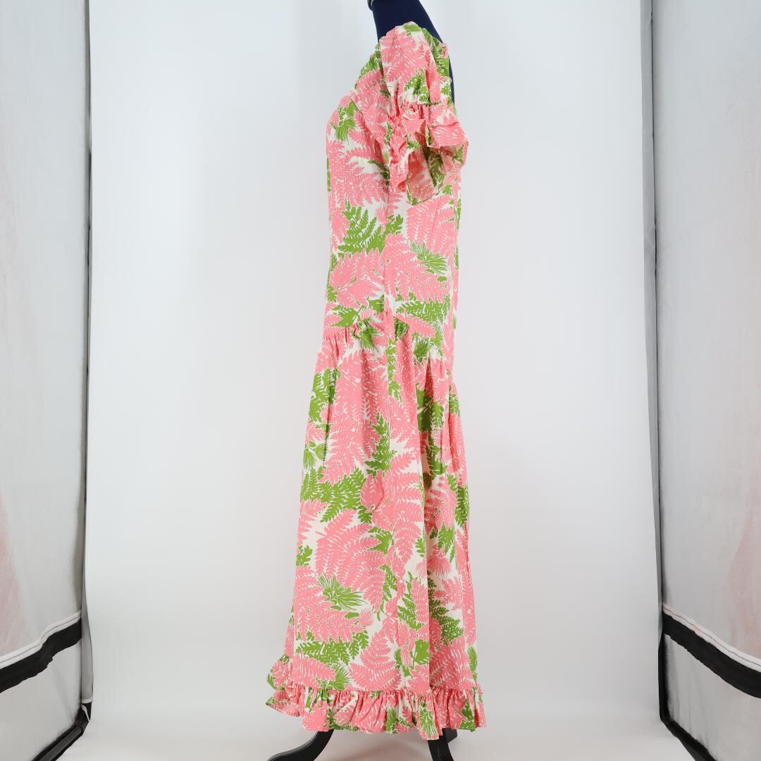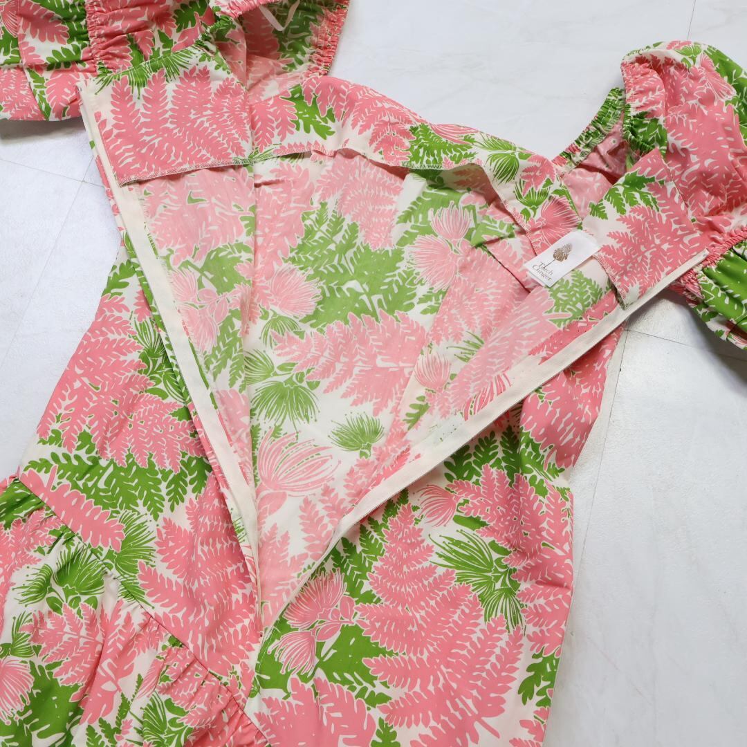 【ハワイ製 フラダンス衣装】ピンク TorchGinger トーチジンジャー ワンピース ドレス フリル 黄緑 ハワイアン アロハ 可愛い