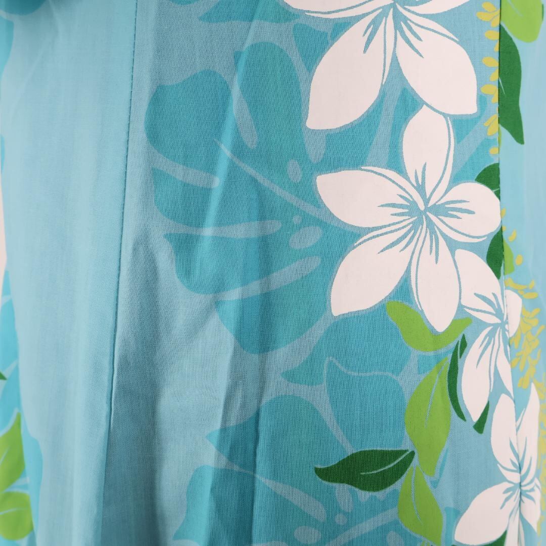 【フラダンス衣装】スカイブルー ワンピース ドレス プルメリア柄 白 水色 ホワイト 爽やか 華やか 絞り 花柄 アロハ かわいい