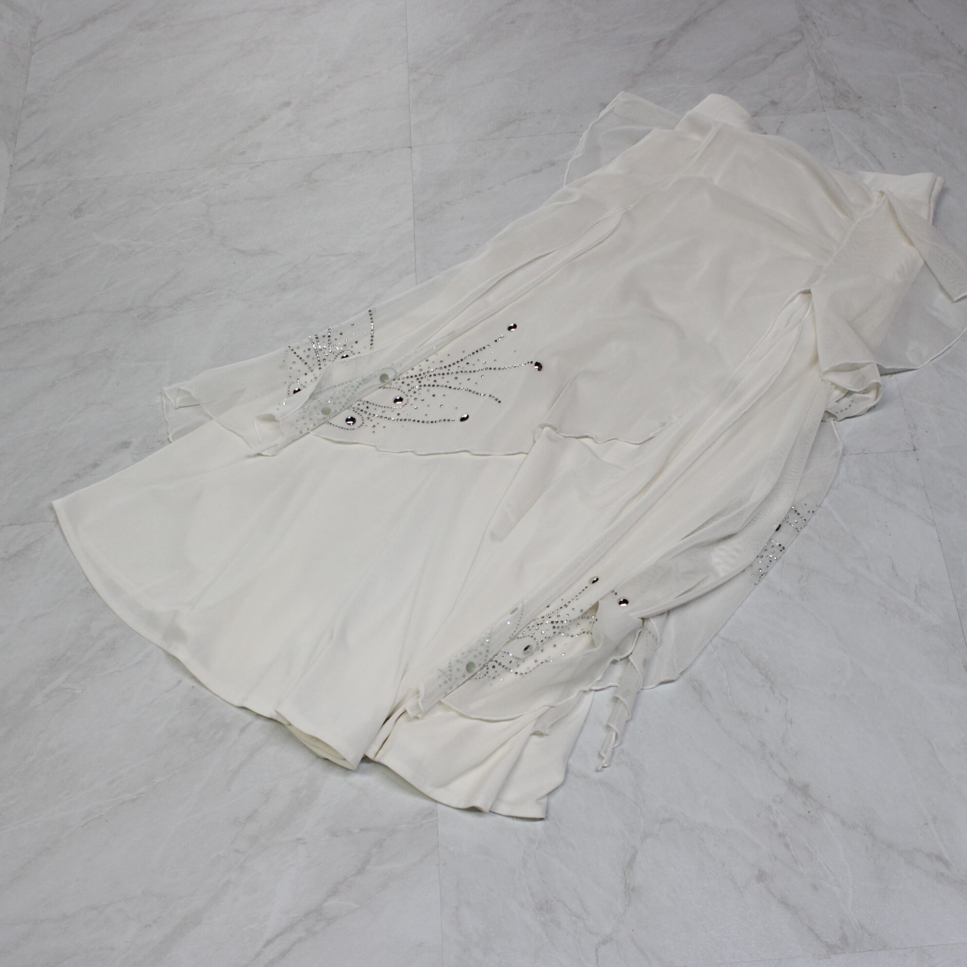 #社交ダンス #ダンス衣装 #スカート #ホワイト #ラインストーン #華やかデザイン #エレガント #フレアスカート #美シルエット #競技ダンス #パフォーマンス #ステージ映え #ダンスファッション #動きやすい #高級感 #ステージ衣装 #古着 #中古 #ENUTSU