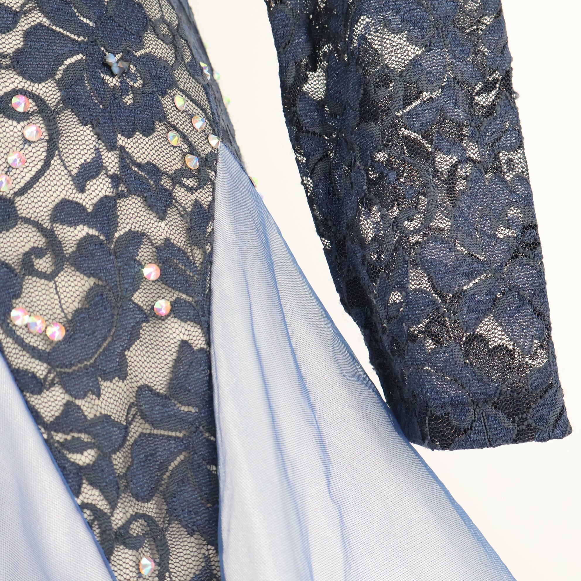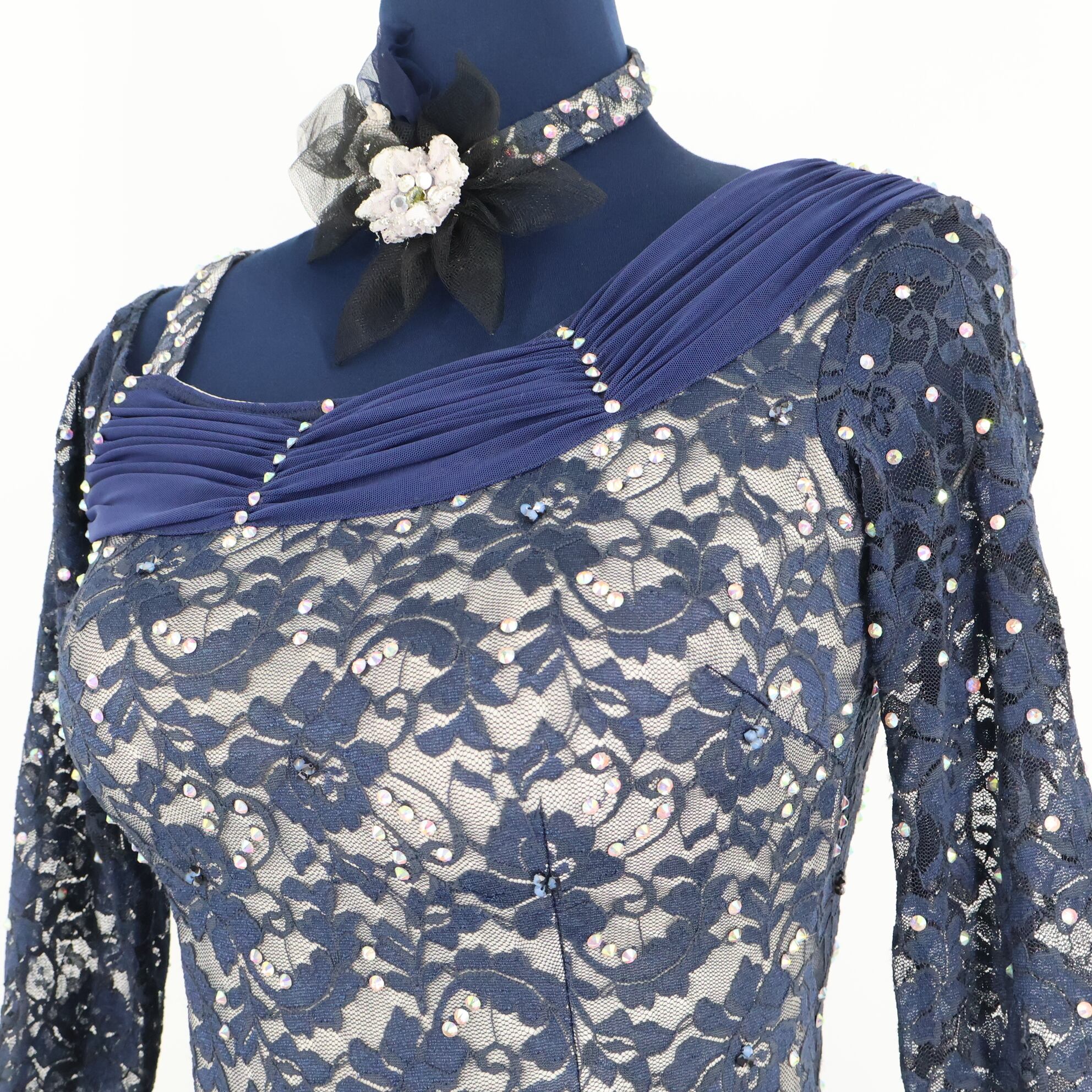 #社交ダンス #ダンス衣装 #ワンピース #ドレス #ネイビー #上品 #レース #競技用 #発表会 #パーティ #フリル #軽やか #胸パッド #背面ファスナー #伸縮性 #トルソー #ファッション #おしゃれ #ドレスアップ #ENUTSU
