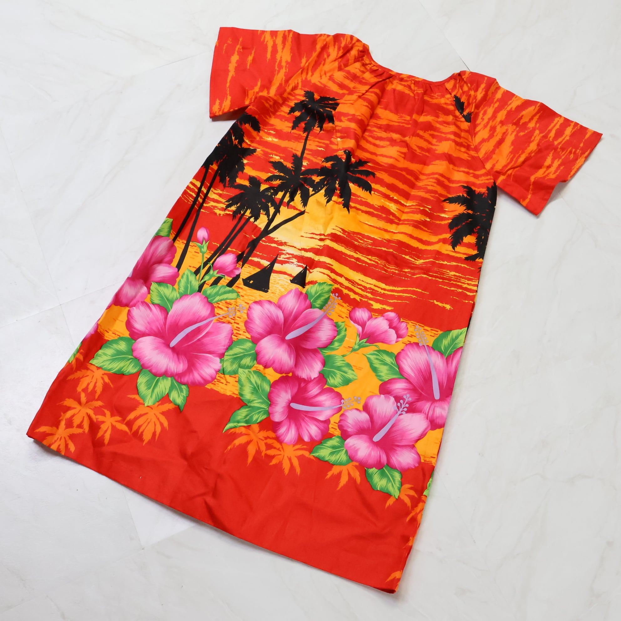 #フラダンス #ワンピースドレス #ハイビスカス柄 #花柄ドレス #レッド #オレンジ #イエロー #ピンク #半袖ドレス #鮮やかカラー #軽やか素材 #南国スタイル #ハワイアンプリント #アロハファッション #フラ衣装 #タヒチアン #リゾートコーデ #ダンス衣装 #ダンスコスチューム #ステージ衣装 #古着 #中古 #ENUTSU