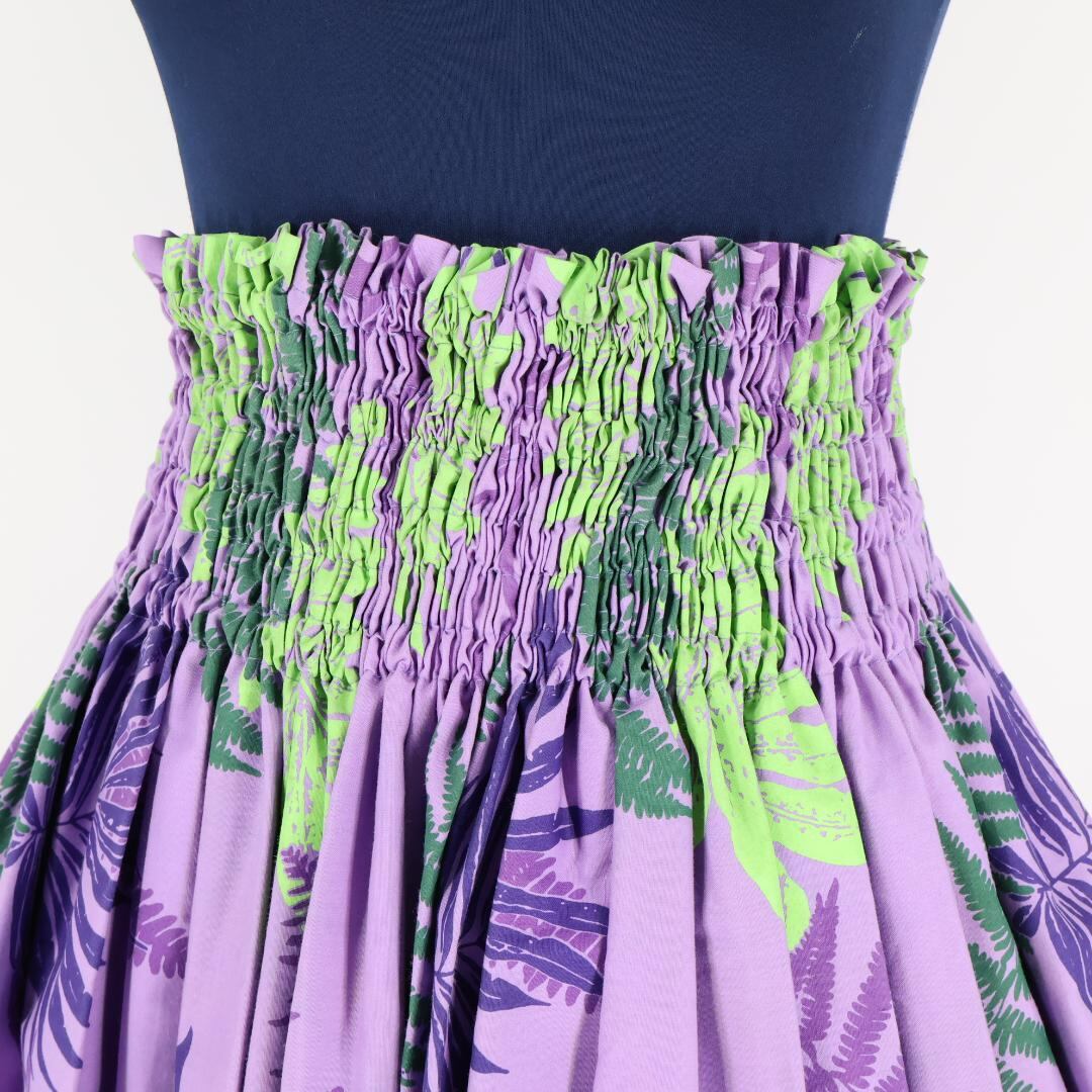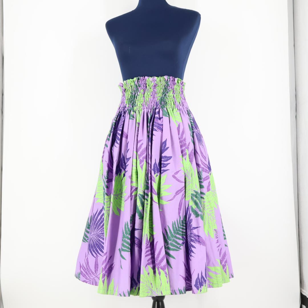 【フラダンス衣装】パープル パウスカート 紫 緑 グリーン 葉っぱ柄 爽やか 明るい ハワイアンプリント アロハ かわいい ゴム