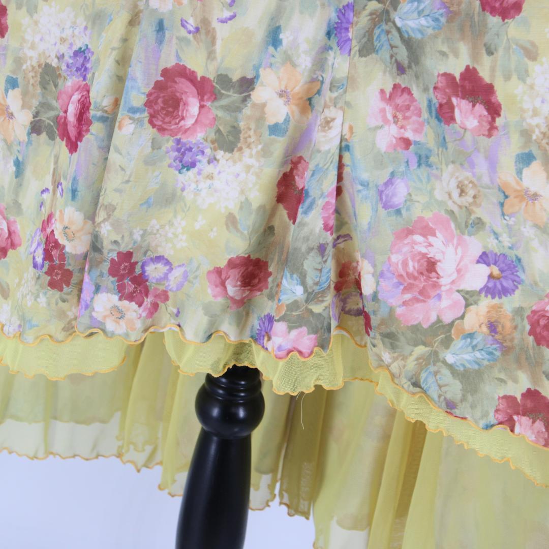 【美品 日本製社交ダンス衣装】上下セット UNA ユーナ Lサイズ 黄色 イエロー 花柄 かわいい 可愛い 上品 シック 清楚 気品