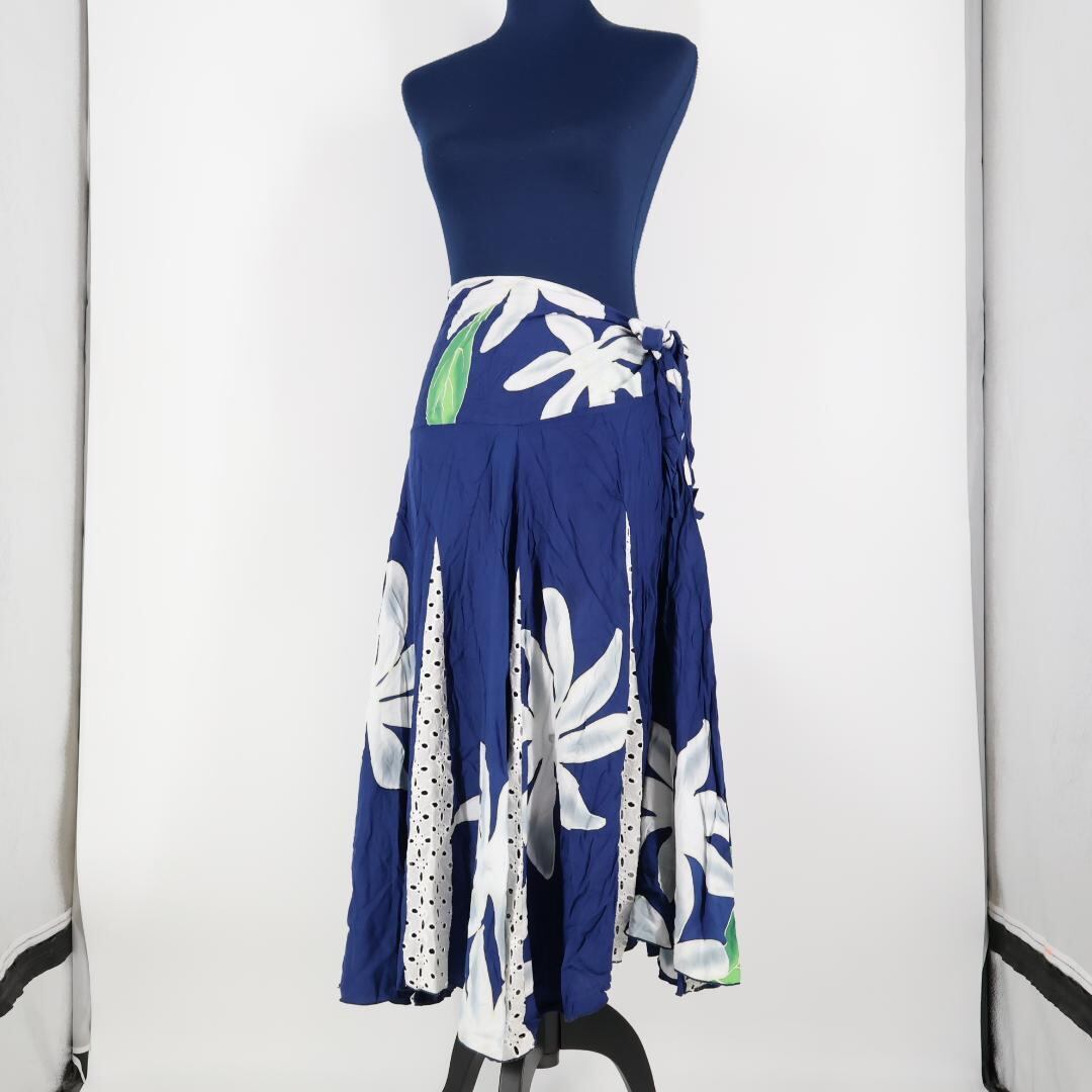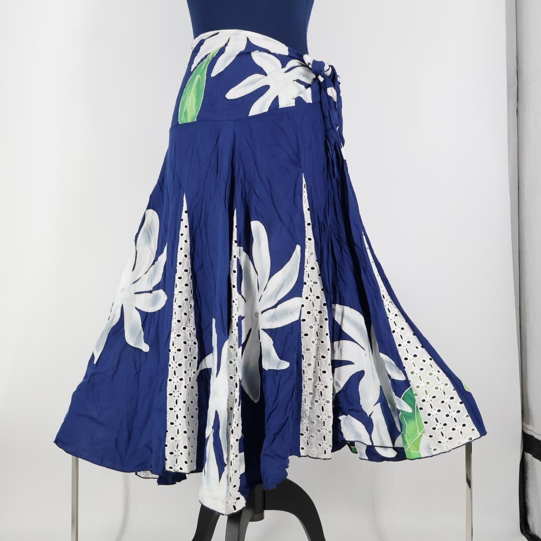 【フラダンス衣装】ネイビー AREMITI アレミティ スカート パレオ ワンピース ドレス タヒチアン ティアレ柄 白 紺 ホワイト