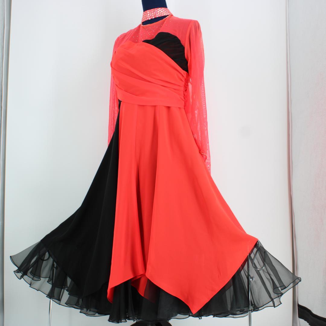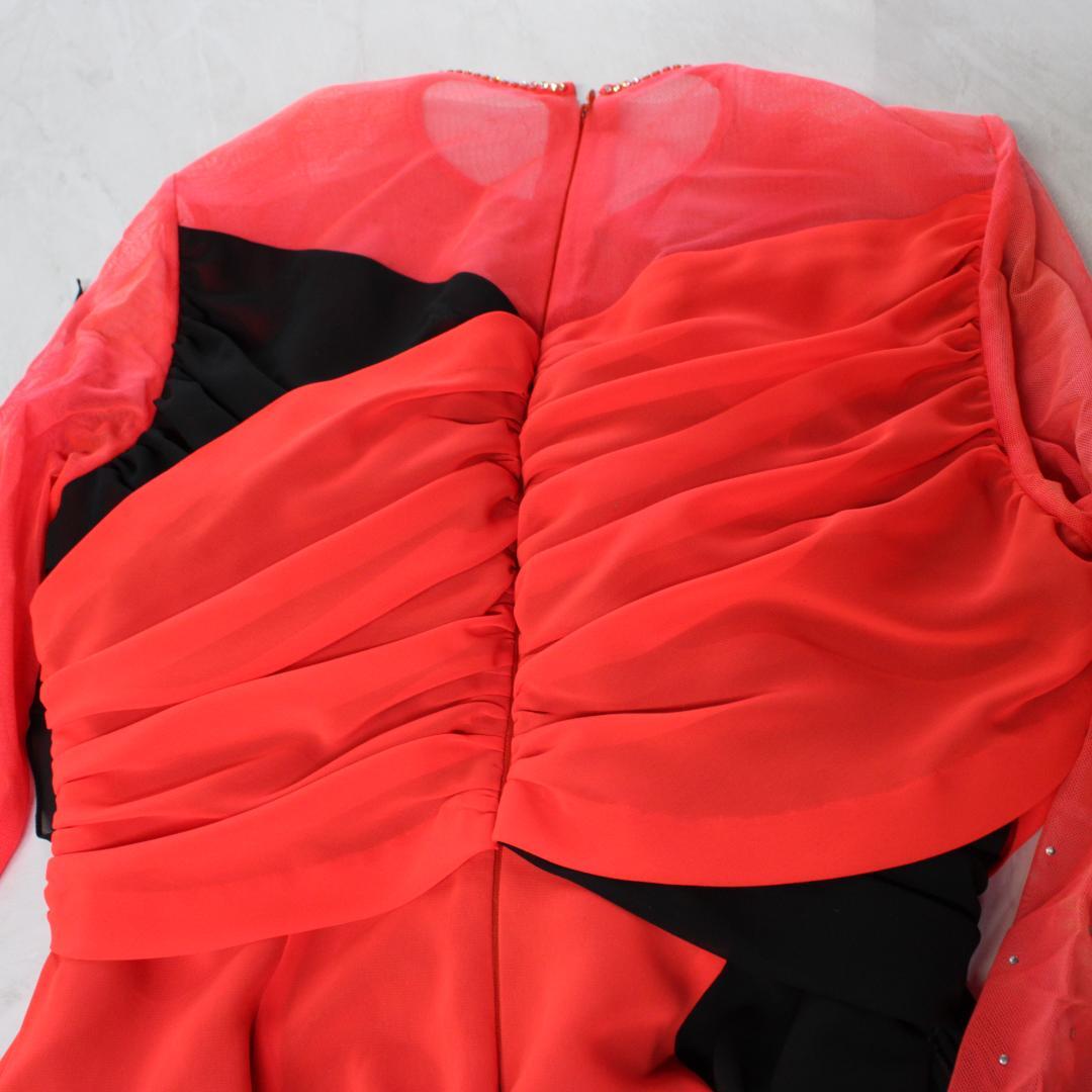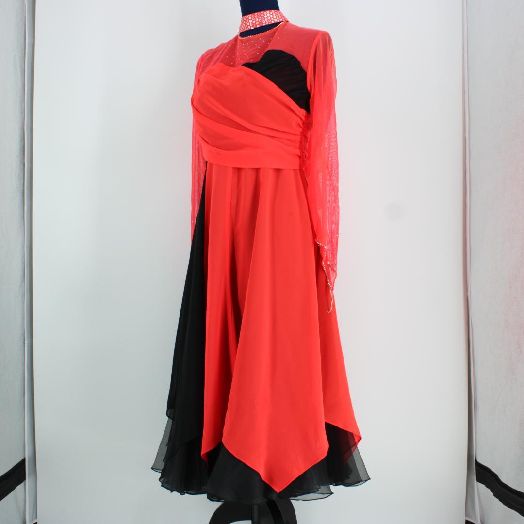 【日本製社交ダンス衣装】ワンピース ドレス BOUTIQUE MUGEN 赤 黒 レッド ブラック ラインストーン チョーカー 13号 派手