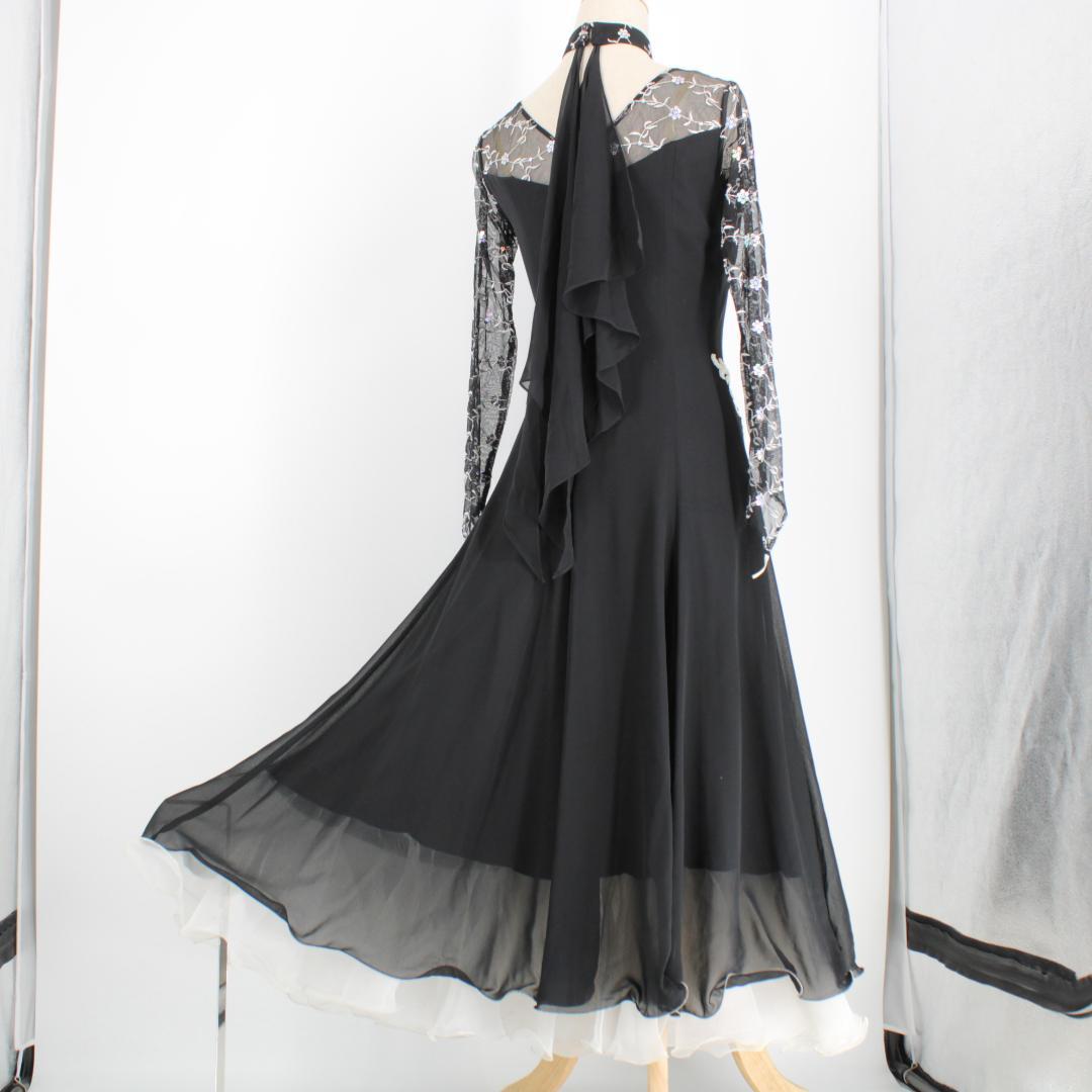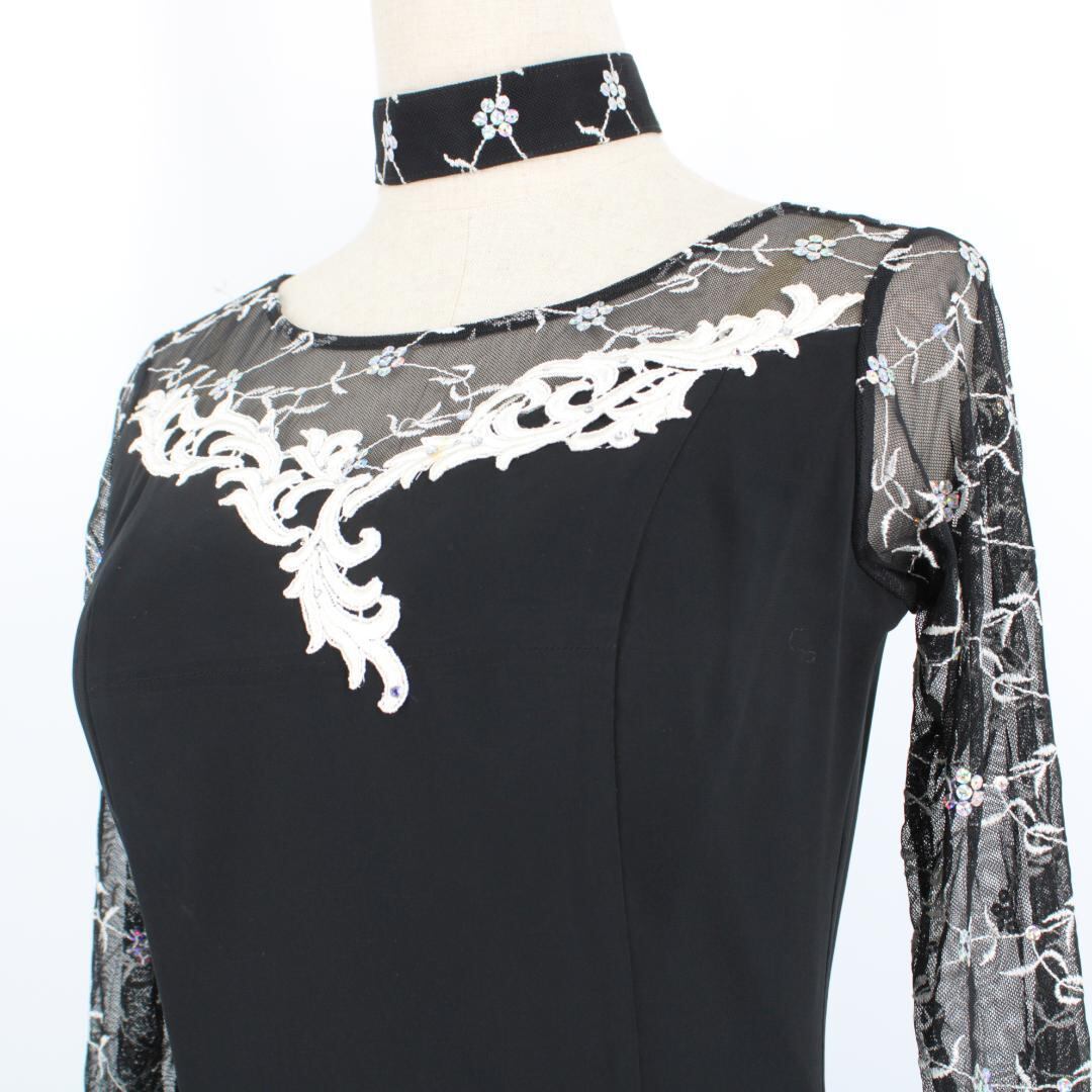【日本製 社交ダンス衣装】ブラック Corlal コーラル ワンピース ドレス 黒 長袖 レース 白 ホワイト ダンス用 デモ パーティ