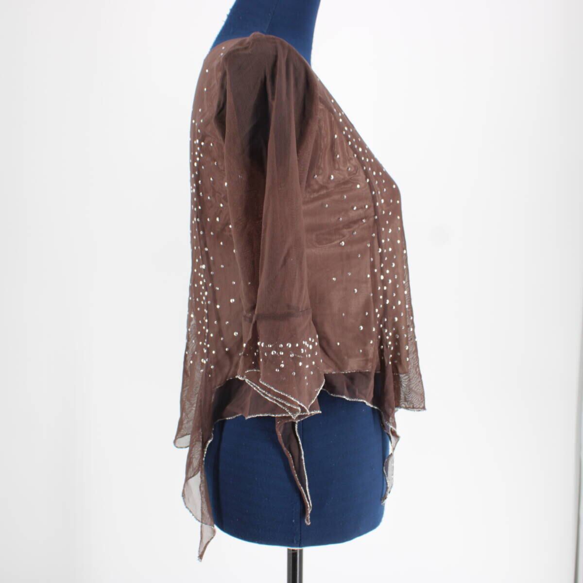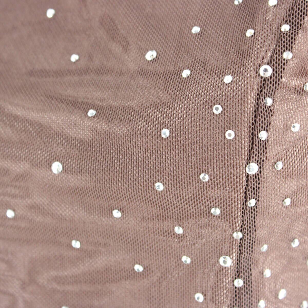 【美品 社交ダンス衣装】トップス レッスンウェア 練習着 leirena レイリーナ 茶色 ブラウン ラインストーン レース 透け感