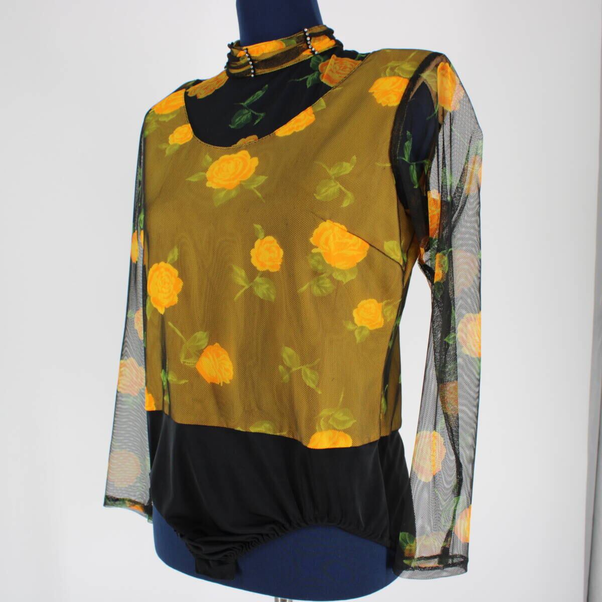 #社交ダンス #ダンス衣装 #日本製 #オレンジイエロー #ブラック #花柄 #スポーツウェア #伸縮性 #肩パッド #レオタード #ファスナー仕様 #ダンスファッション #イベント用衣装 #パフォーマンス #レースデザイン #ダンスウエア #女性用衣装 #エレガント #スタイル #ENUTSU