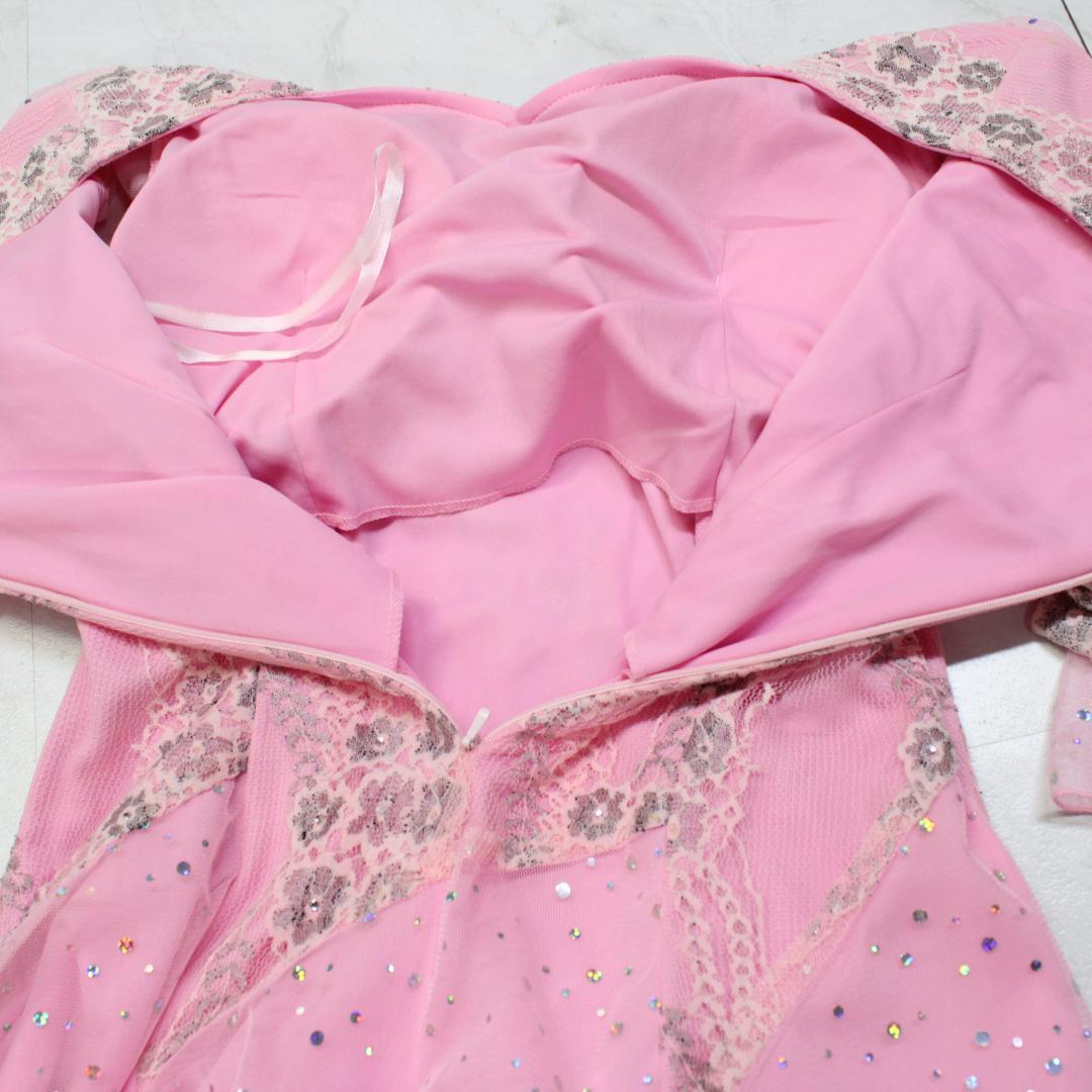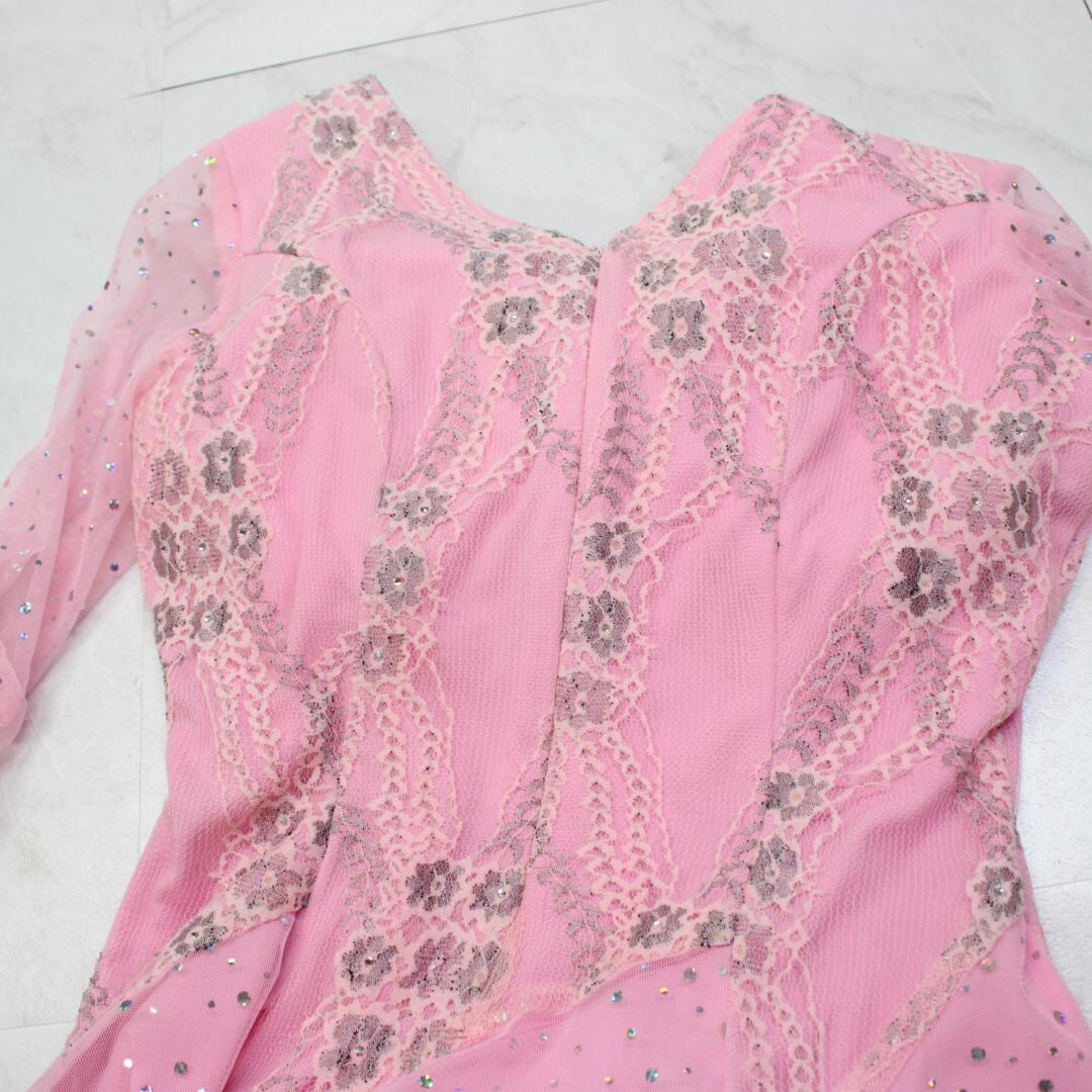 【美品 社交ダンス衣装】ワンピース ドレス leirena レイリーナ ピンク 花柄 レース ラインストーン ホログラム かわいい