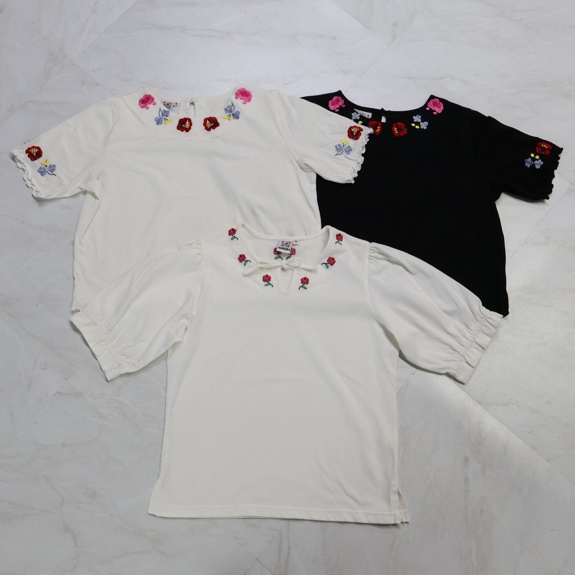 【フォークダンス衣装 3点セット】AURORA トップス まとめ売り ホワイト ブラック 刺繍 花柄 リボン 白 黒 セット かわいい