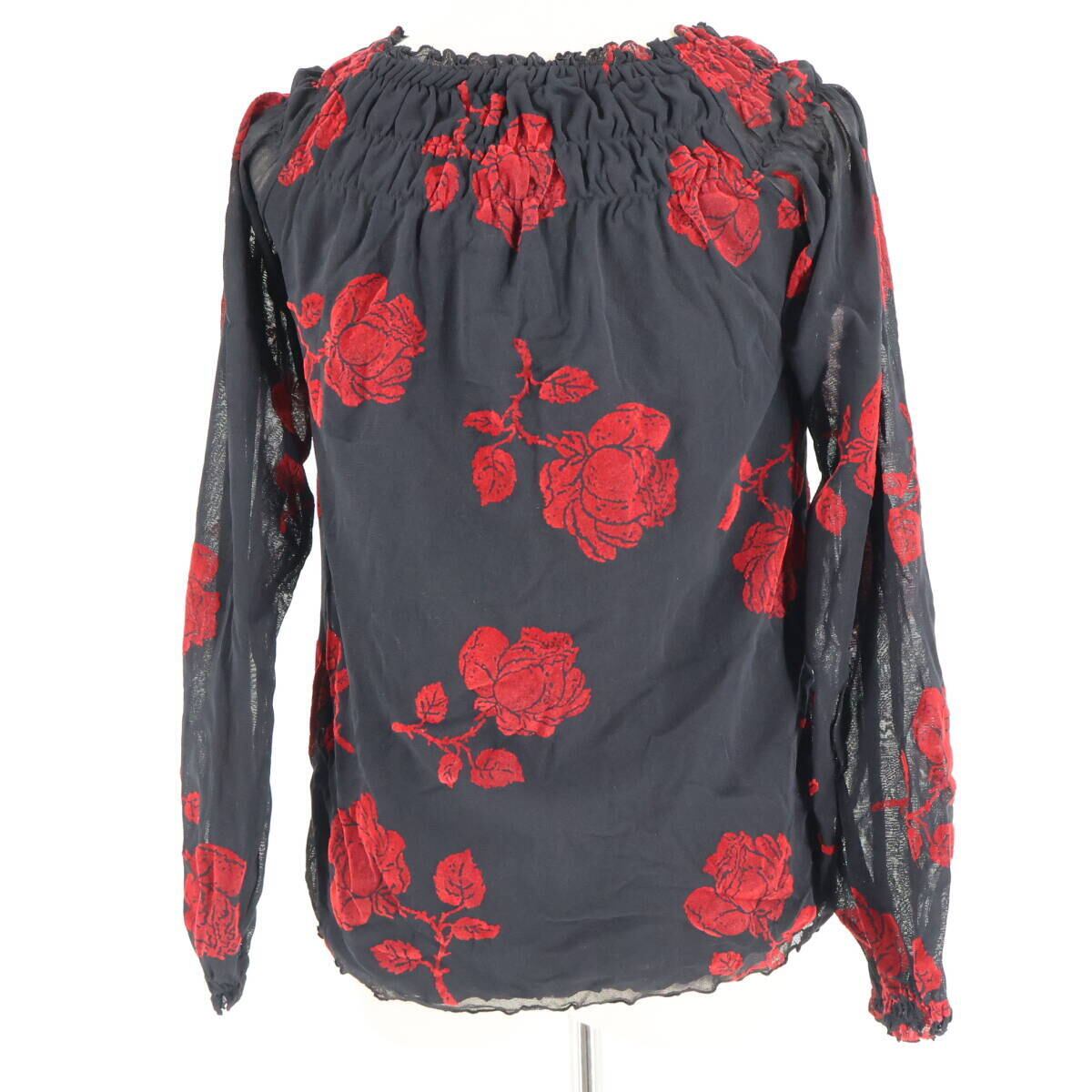 【美品 日本製 社交ダンス衣装】ブラック Chacott チャコット ブラウス トップス 黒 赤 薔薇 花柄 パーティ レッスン 発表会