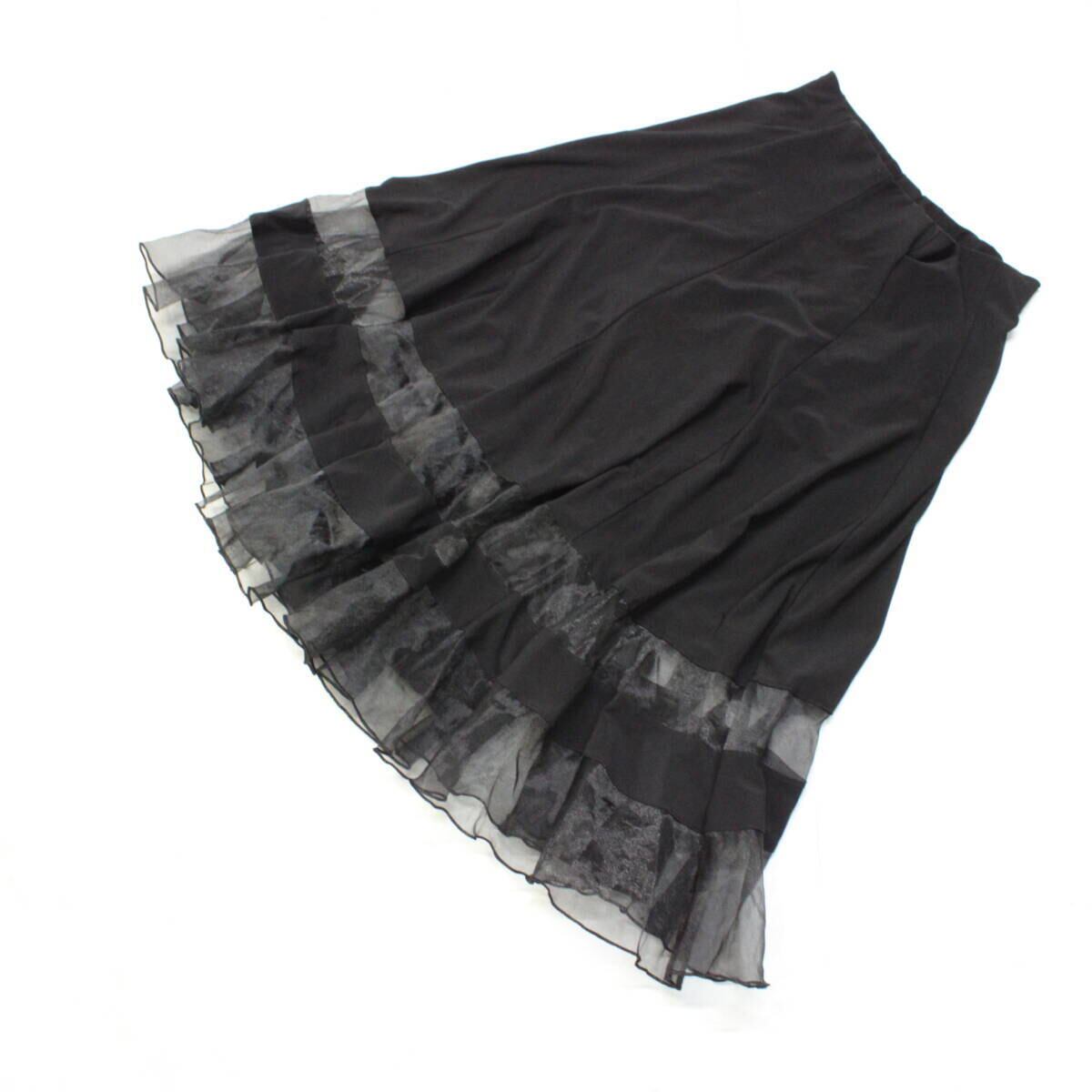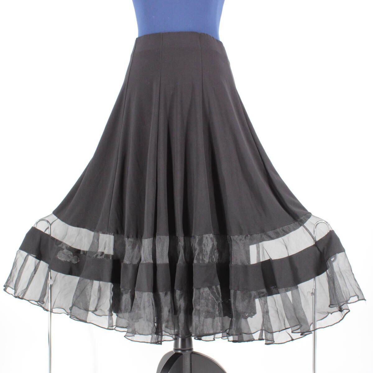 【美品 社交ダンス衣装】スカート レッスン ウェア 練習着 黒 ブラック 無地 シンプル レース シースルー 透け感 上品 気品