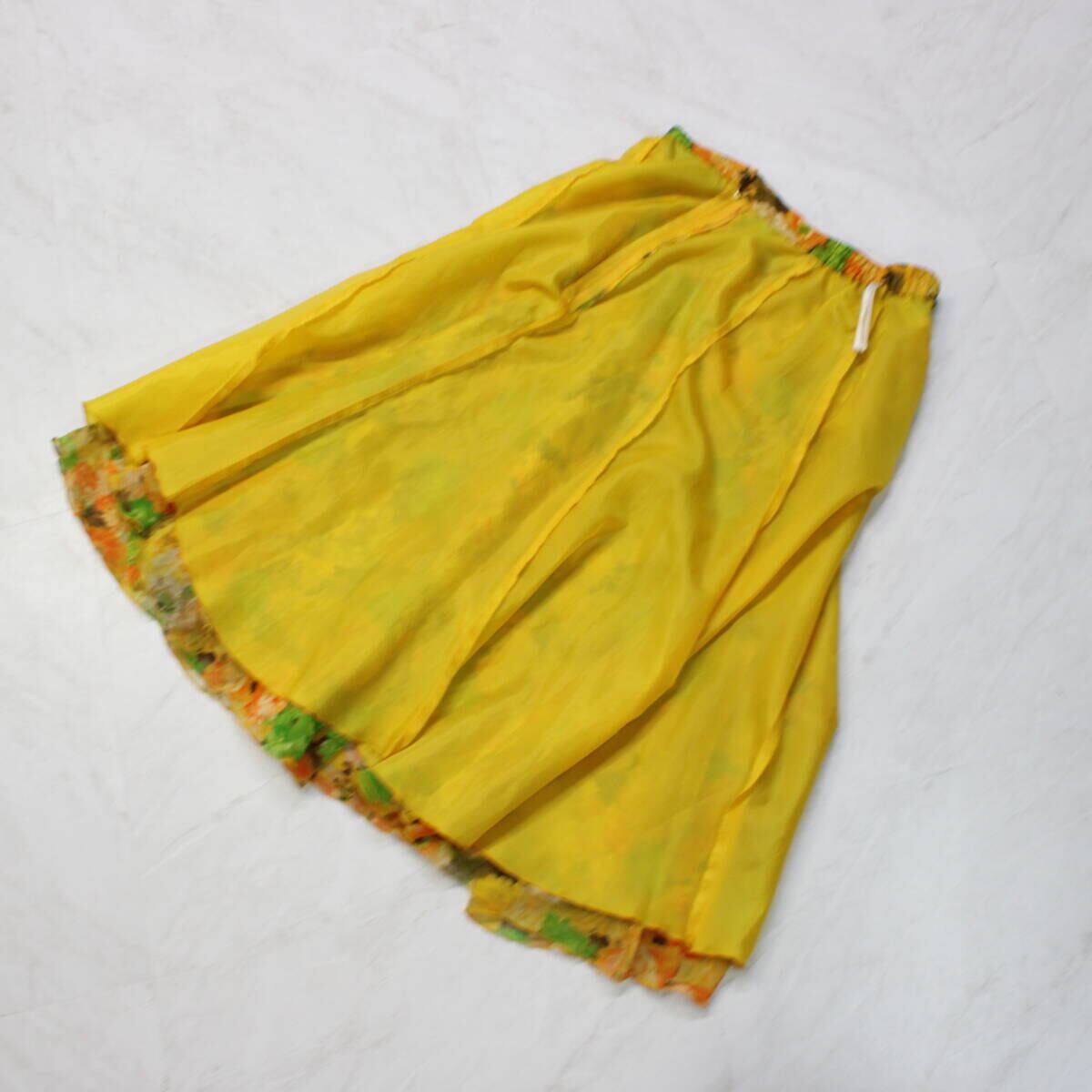 【美品 日本製社交ダンス衣装】スカート レッスンウェア 練習着 Lサイズ UNA ユーナ 黄色 イエロー オレンジ 黄緑 花柄 清楚