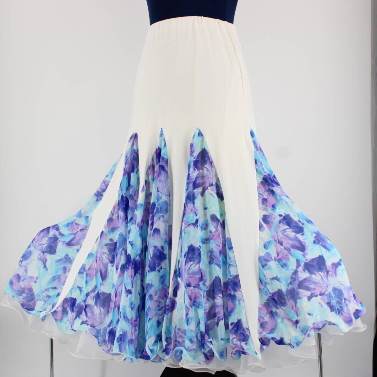 #社交ダンス #ダンス衣装 #スカート #花柄 #ホワイト #ブルー #ライトブルー #パープル #二重スカート #ウエストゴム #伸縮性 #ダンスファッション #イベント #パフォーマンス #おしゃれ #女性用 #高品質 #可愛い #スポーツ #ENUTSU