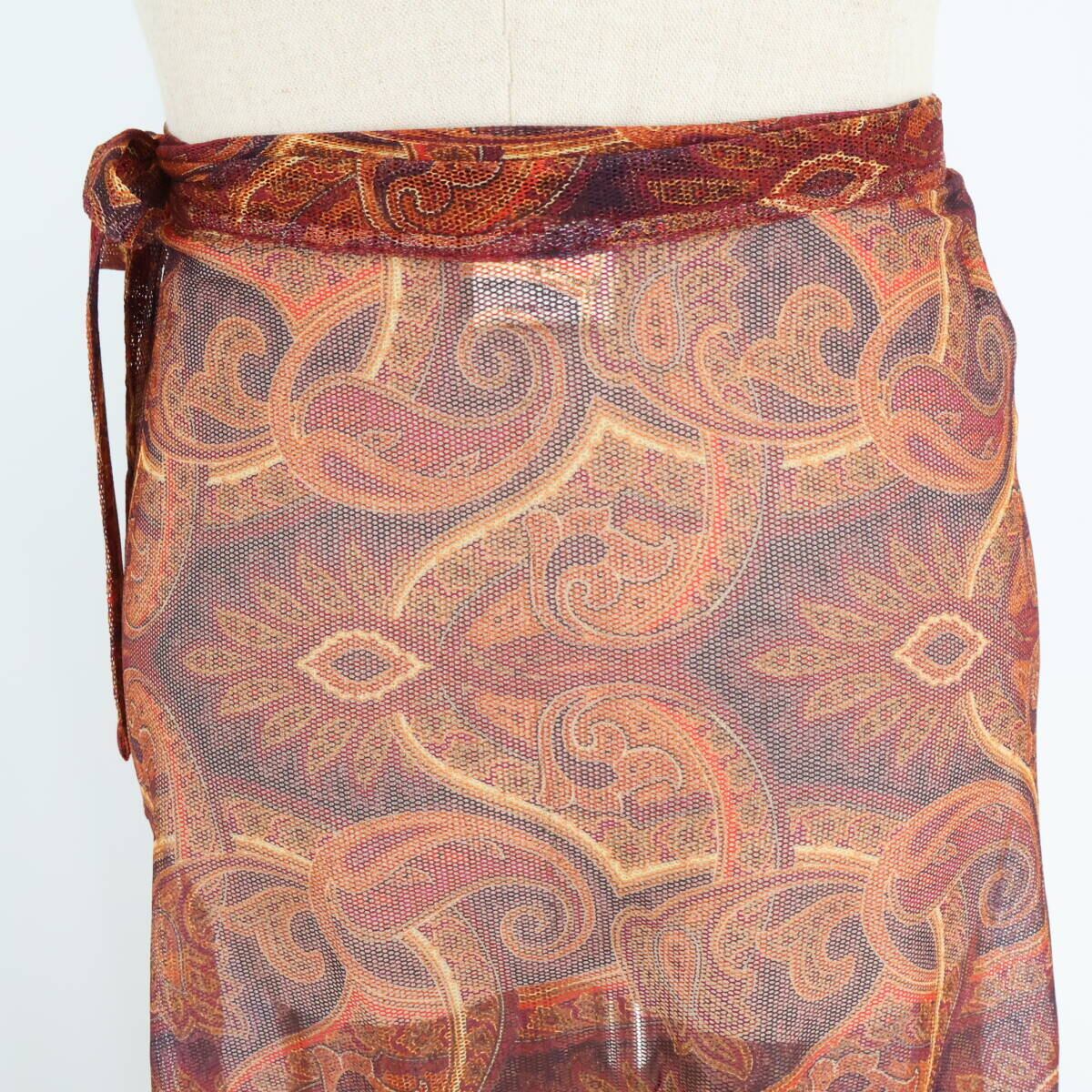 【美品 日本製 社交ダンス衣装】ブラウン Chacott チャコット 巻きスカート ラップスカート 赤茶色 赤 レッド ペイズリー柄