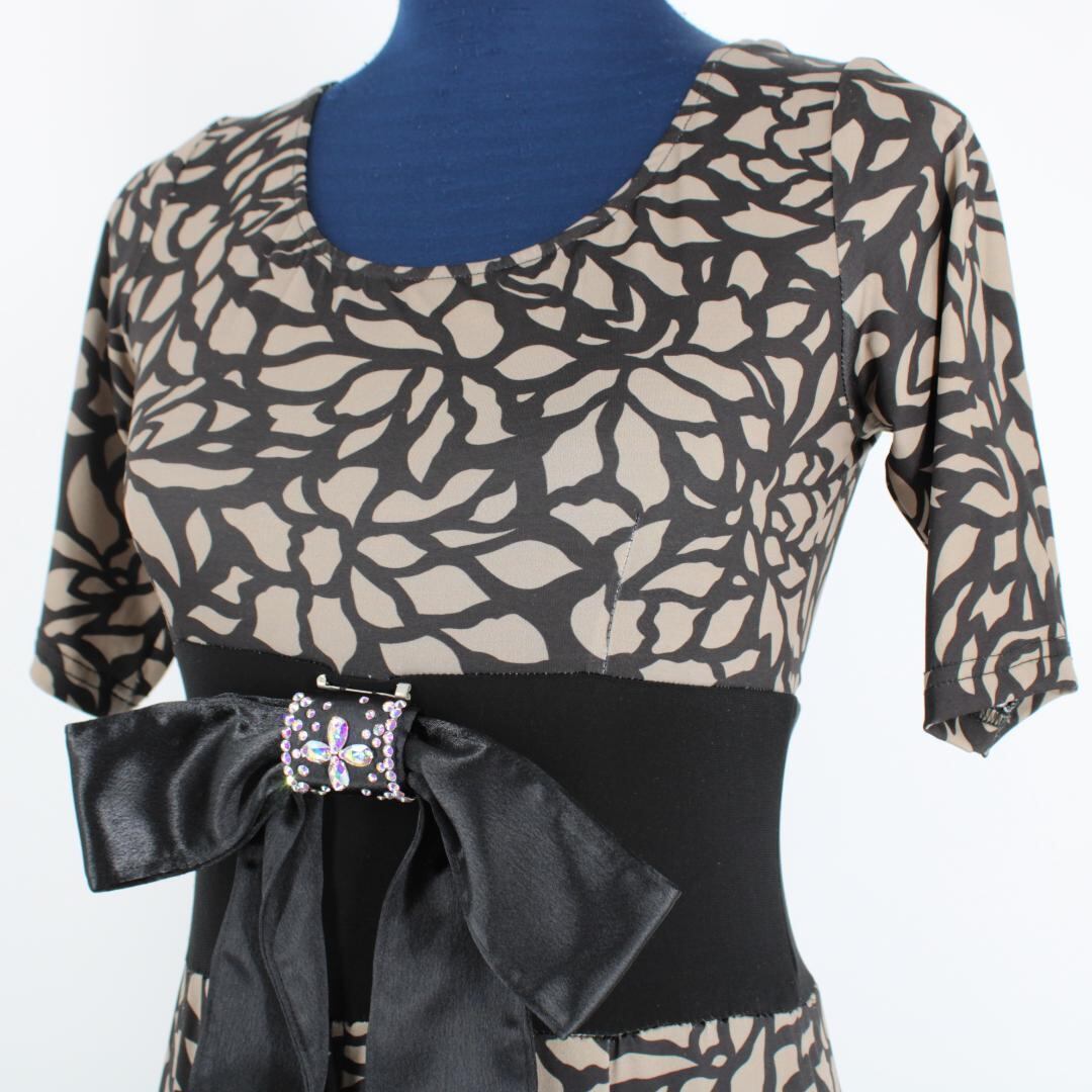 【美品 社交ダンス衣装】ブラック gentil ジャンティ ワンピース ドレス 黒 柄 高級感 上品 光沢 パーティ 発表会 綺麗 伸縮