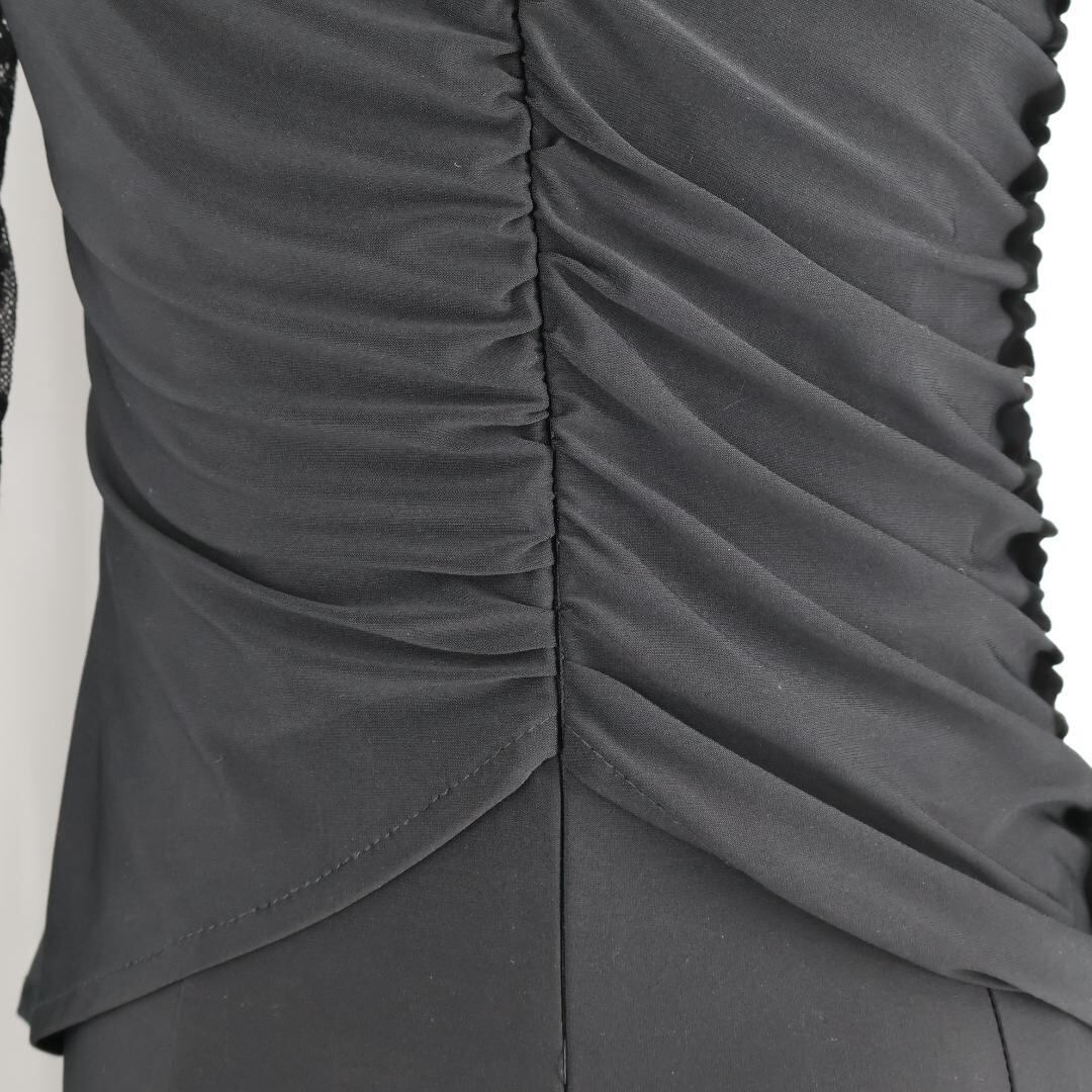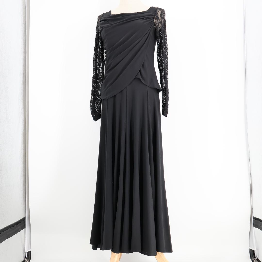【美品 社交ダンス衣装】ブラック ICHIOKU イチオク ワンピース ドレス 黒 無地 レース 長袖 パーティ発表会 上品 高級感