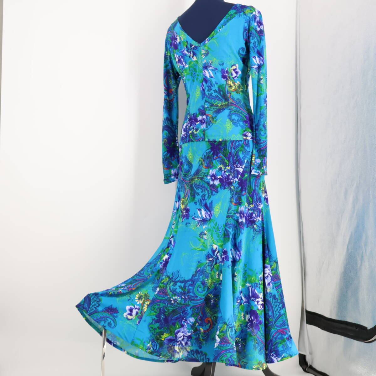 【美品 日本製 社交ダンス衣装】ブルー Chacott チャコット 上下セット セットアップ ツーピース 青 緑 長袖 緑 パーティ