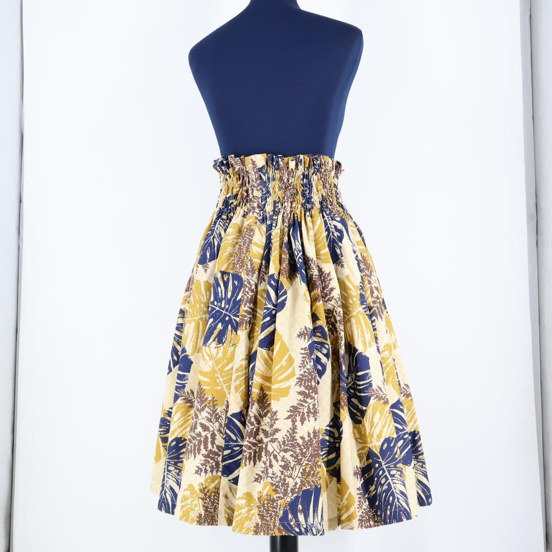 【日本製 フラダンス衣装】イエロー ハレハワイイ パウスカート 紺 黄 モンステラ柄 ネイビー ホワイト ハワイアン かわいい