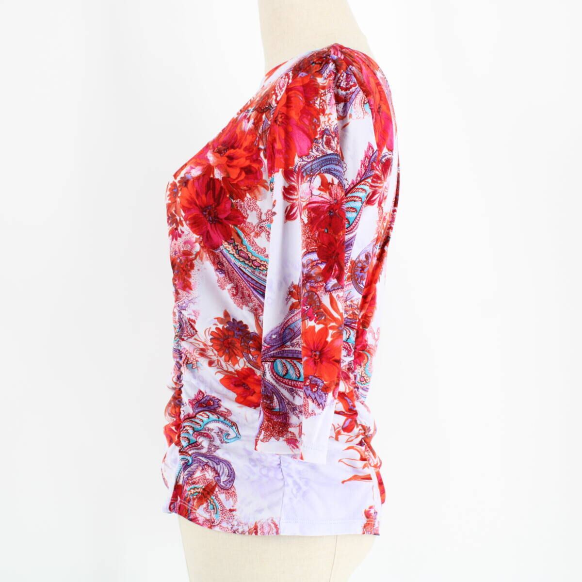 【美品 日本製 社交ダンス衣装】グレー Chacott チャコット ブラウス トップス カットソー 赤 レッド 紫 花柄 オレンジ 伸縮