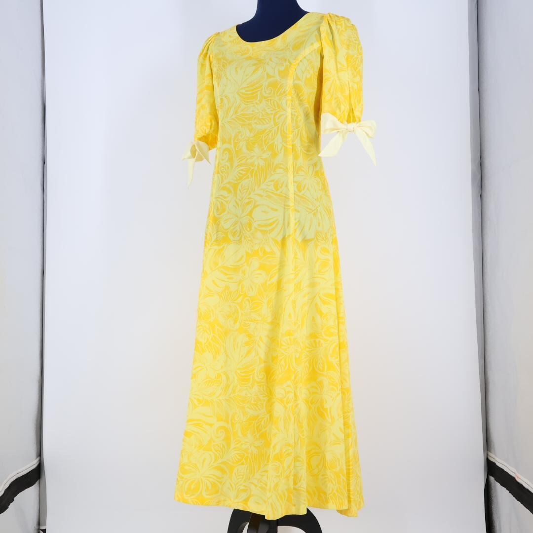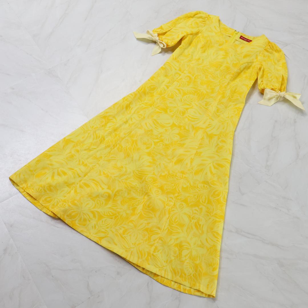 【日本製 フラダンス衣装】イエロー MermaidLine MMJ マーメイドライン ワンピース ドレス リボン プルメリア柄 かわいい 黄色