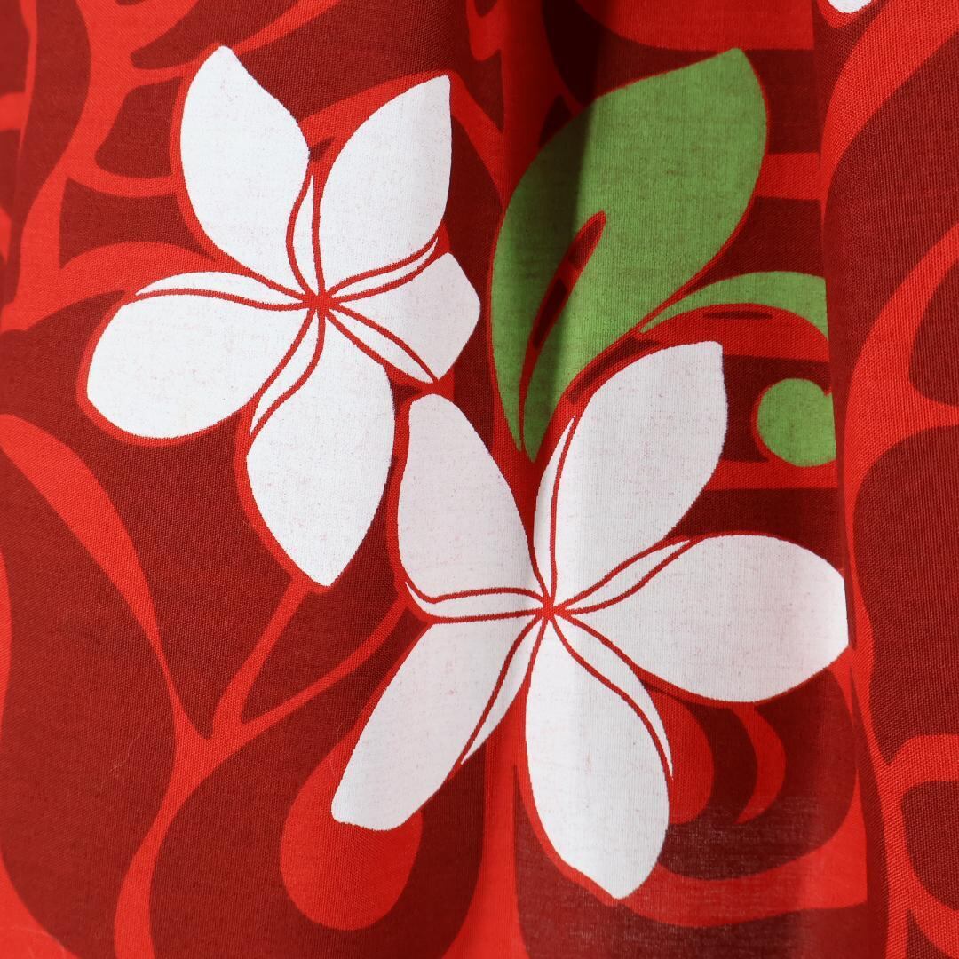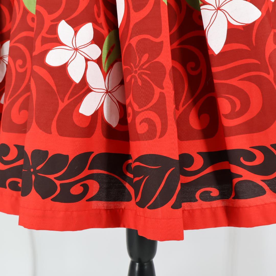 【日本製 フラダンス衣装】レッド MMJ エムエムジェイ パウスカート プルメリア柄 赤 白 花柄 黒 ブラック ホワイト 鮮やか 緑