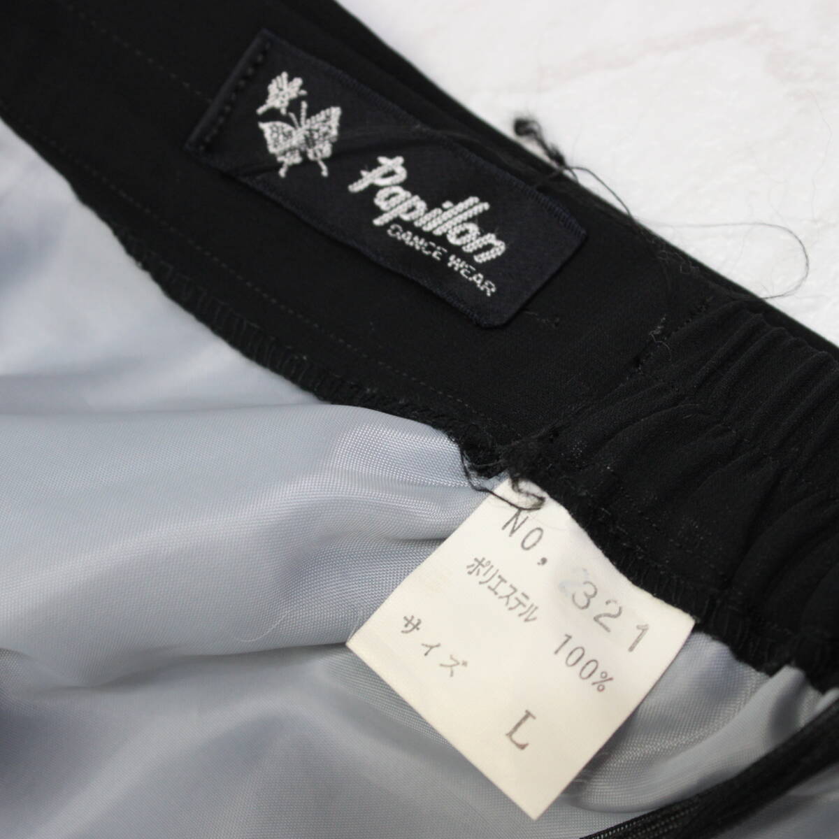 【美品 社交ダンス衣装】スカート レッスンウェア 練習着 PAPILLON パピヨン Lサイズ 黒 青 ブラック ブルー ラインストーン