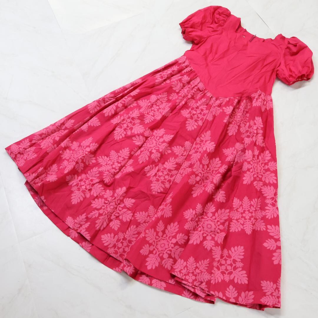 【ハワイ製 フラダンス衣装】ピンク T&L MUUMUU FACTORY ワンピース ドレス 半袖 パフスリーブ 華やか 鮮やか 花柄 かわいい
