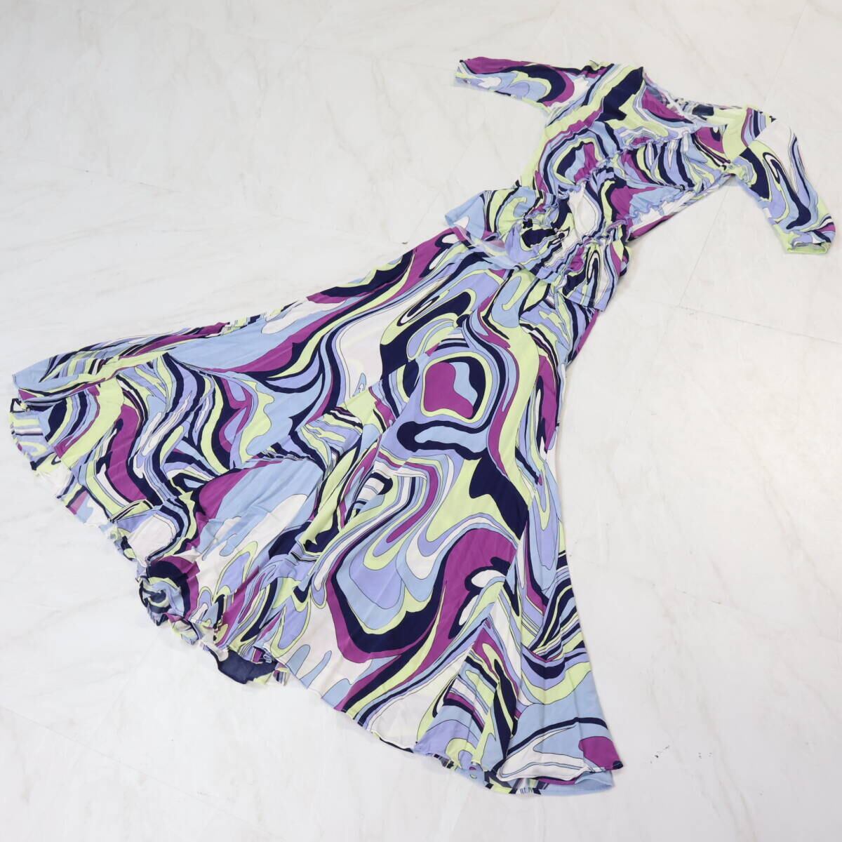 【美品 日本製 社交ダンス衣装】パープル Chacott チャコット 上下セット ツーピース セットアップ 紫 青 水色 マーブル 伸縮
