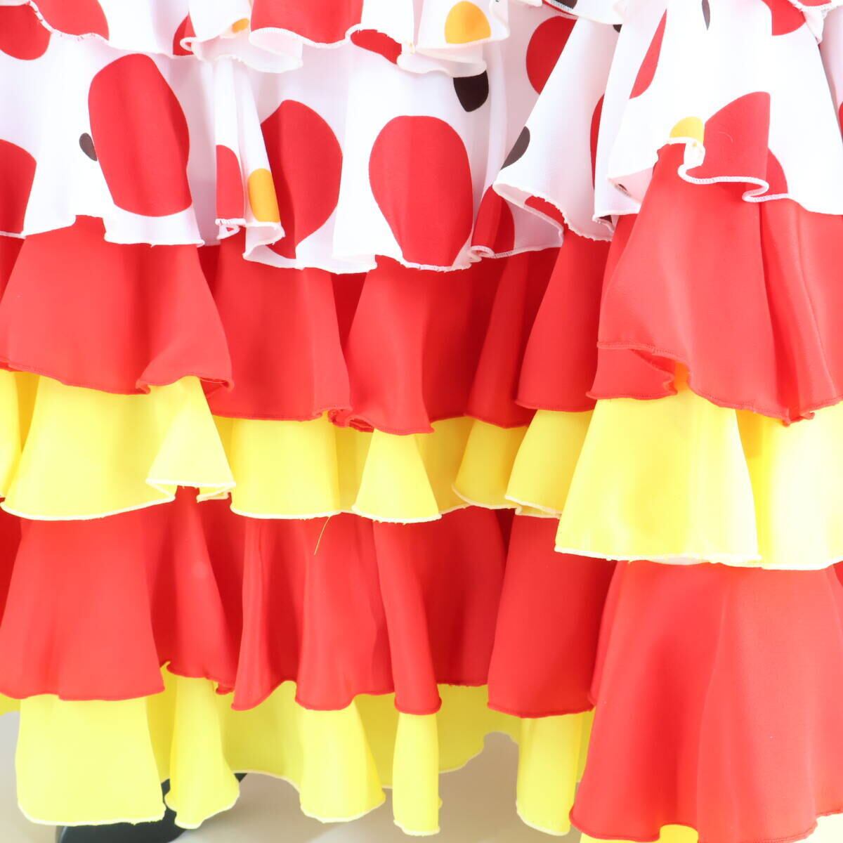【美品 フラメンコ衣装】ホワイト ファルダ スカート ボランテ ボウタイ レッド 赤 白 イエロー 黄色 ドット 水玉 フリル