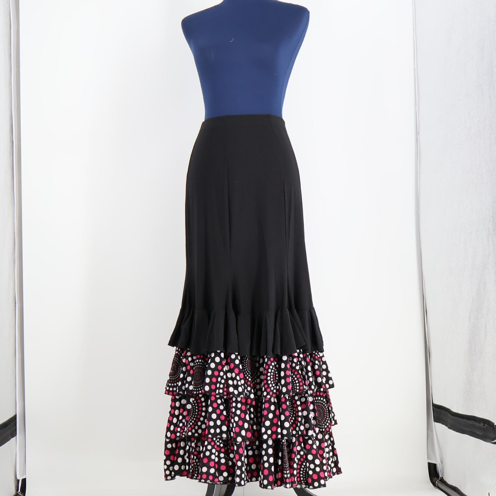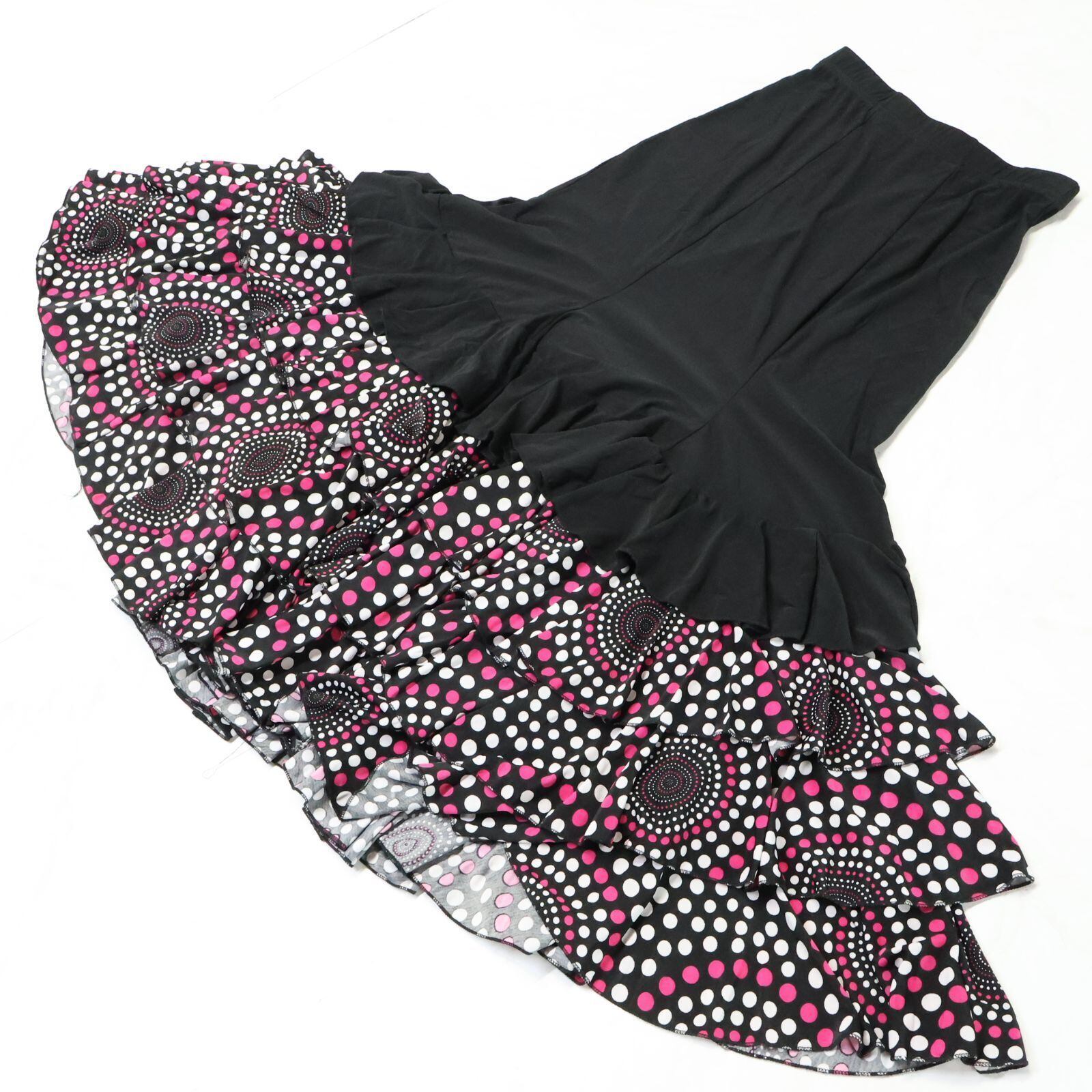 【美品 フラメンコ衣装】ブラック ファルダ スカート 黒 ボランテ フリル 水玉 ドット ピンク 白 ホワイト 伸縮 ボリューム