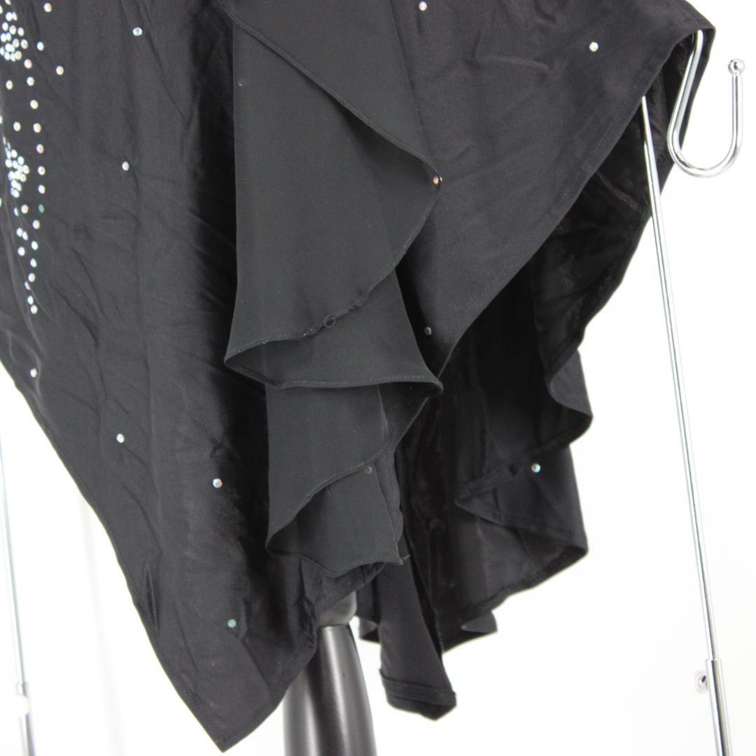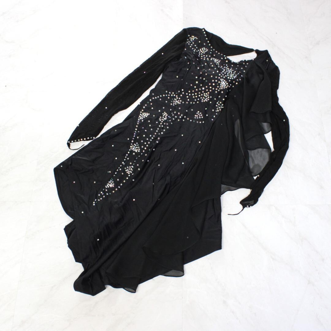 【美品 社交ダンス衣装】ワンピース ドレス 黒 ブラック ラインストーン レオタード シンプル かわいい 可愛い 上品 気品 長袖