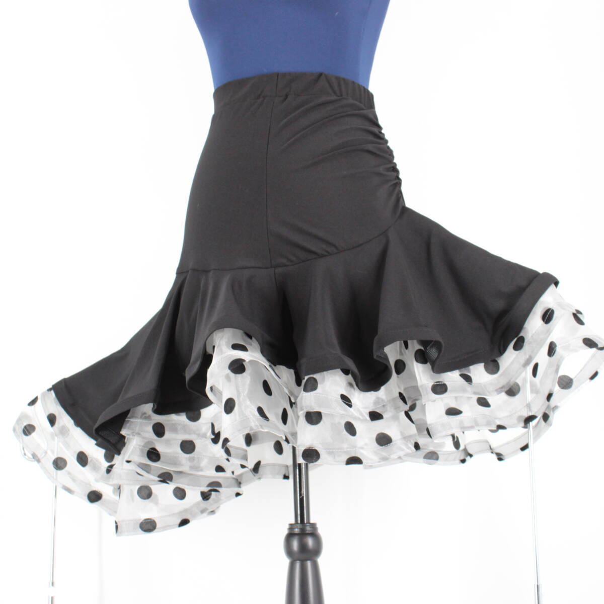【美品 社交ダンス衣装】スカート レッスンウェア 練習着 leirena レイリーナ 黒 白 ブラック ホワイト ドット 水玉 かわいい