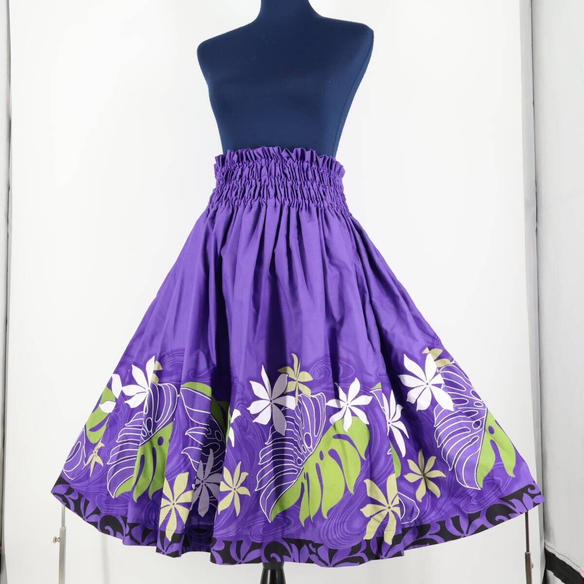 【日本製 フラダンス衣装】パープル パウスカートショップ パウスカート 白 黄緑 ホワイト 紫 鮮やか 黒 ブラック かわいい 花