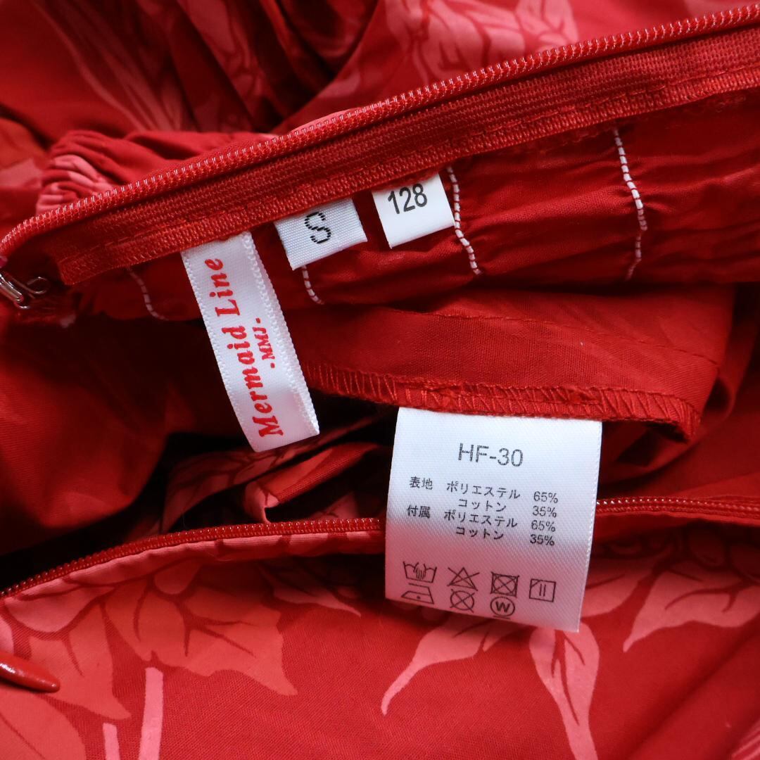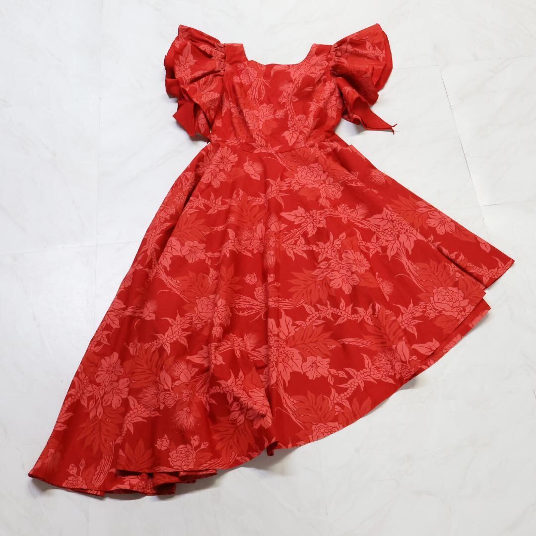 【フラダンス衣装】レッド MermaidLine MMJ マーメイドライン ワンピース ドレス 赤 花柄 フリル ノースリーブ アロハ 可愛い